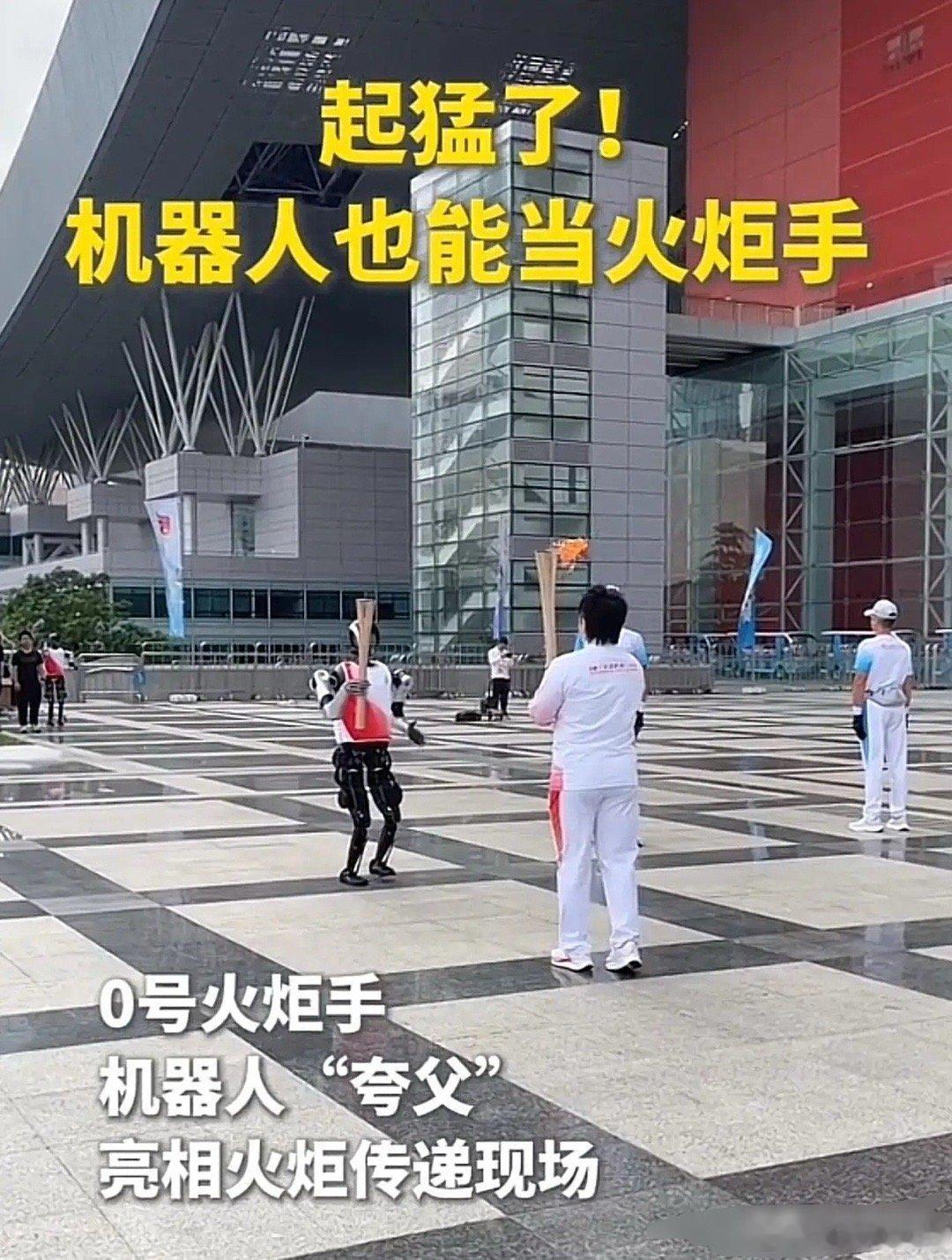 今天全运会的火炬传递,深圳举行的火炬传递中,惊现机器人火炬手,一点都不违和,从人的火炬手中接过火焰,然后举着火炬奔跑起来。