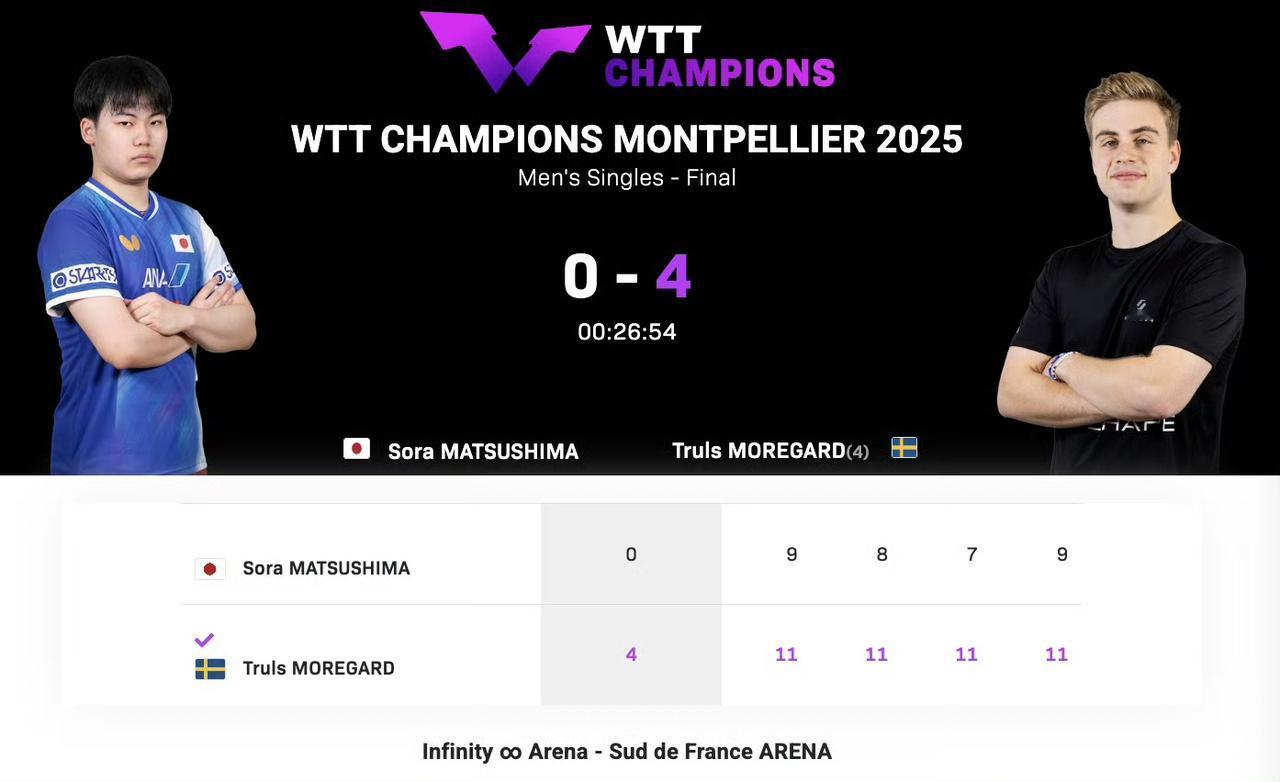 王艺迪、莫雷加德夺冠! WTT冠军赛蒙彼利埃站结束。王艺迪4-3战胜萨宾·温特、莫雷加德4-0松岛辉空,夺得男女单打冠军。