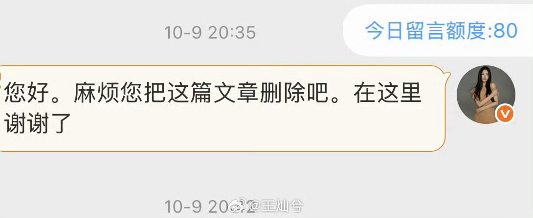 王灿发文说没买热搜更没有包年,并晒出了发私信删帖的截图。