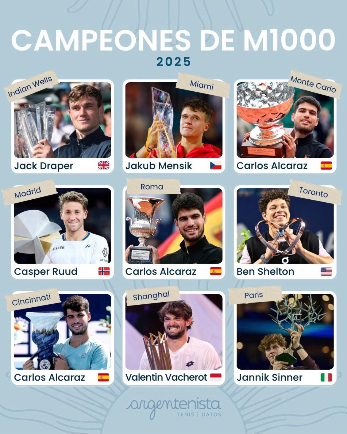 有阿尔卡拉斯的三冠,也有德雷珀、谢尔顿的首夺,还有瓦舍罗的黑马神话! ​​​