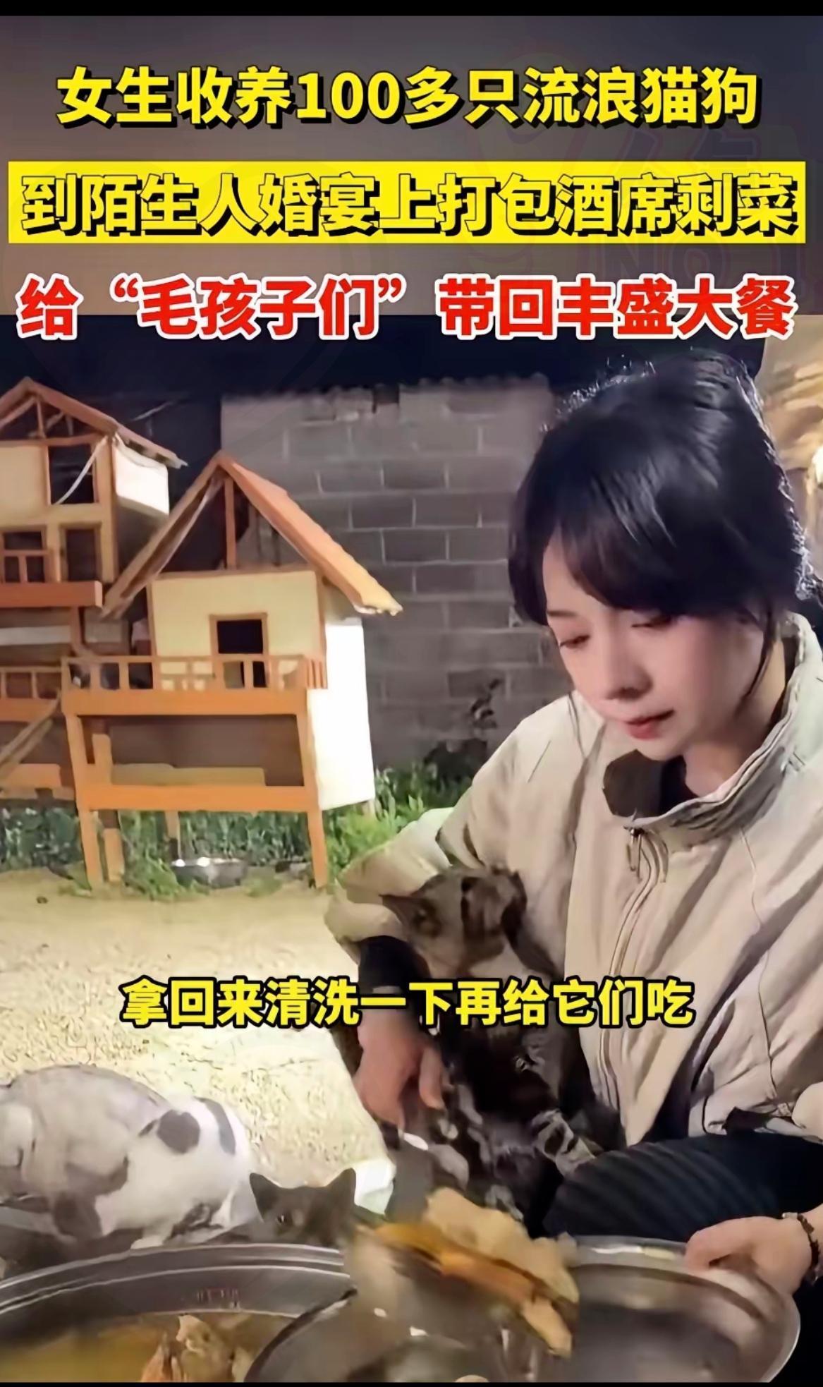 刷到云南这位女生的故事,真的瞬间破防了!为了养活收养的100多只流浪猫狗,她竟放
