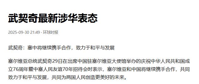 塞尔维亚总统武契奇的涉华言论引发美西方风暴!武契奇说:“如果说有哪个国家从未对塞尔维亚施加政治压力,始终用平等姿态谈合作,那一定是中国。这种信任,比任何军事同盟都珍贵。” 当今世界,正经历着深刻变革。往昔少数国家独掌话语权的格局已不复存在,各国相处模式亦在悄然转变,国际秩序正朝着更加多元、平等的方向演进。 过去那种靠军事结盟、政治施压维系的关系慢慢淡化,越来越多国家开始追求平等相待、互利共赢的合作,这股多极化的浪潮,正影响着许多国家的外交选择。 塞尔维亚就是在这样的大背景下,走出了一条属于自己的外交道路。这个国家没有一头倒向任何一方,而是在多个大国之间保持着灵活的互动。 一方面,它积极和中国深化合作,另一方面也没有切断和西方以及俄罗斯的联系,始终把自己的国家利益放在首位,用一种平衡的方式寻求生存和发展的空间,这种不依附于人的战略选择,让它在复杂的国际环境中拥有了更多主动权。 2024年7月,中国与塞尔维亚达成重大合作,双边自贸协定正式生效。该协定意义重大,是中国与中东欧国家签署的首个同类协定,为双方经贸往来增添新活力,开启合作崭新篇章。 根据协定内容,两国大部分商品的贸易都取消了关税,大概 90% 的商品不再需要缴纳进出口关税,长远来看,几乎所有主要进口商品都会实现零关税往来,这样的安排让两国贸易往来变得更加顺畅。 对比之下,美国这些年对塞尔维亚采取了不一样的贸易政策,对其部分商品征收的关税高达 37%,给双方贸易带来了不少阻碍。 而中塞自贸协定生效后,效果立竿见影,2024 年两国贸易总额同比增长了 31.8%,其中塞尔维亚对中国的出口增长更为显著,达到了 38.8%,越来越多塞尔维亚的产品走进了中国市场。 除了自贸协定,中塞在 “一带一路” 倡议的框架下还有很多合作。从铁路、公路等基础设施建设,到农产品贸易、农业技术交流,再到日常用品的进出口,合作领域越来越广。 这些合作不是停留在纸面上,而是真正落地到了塞尔维亚人的生活中,不仅带动了当地经济增长,还创造了大量工作岗位,让不少普通人的收入有了提升,生活变得更加便利。 塞尔维亚总统武契奇曾公开发声,中国乃塞尔维亚之挚友。双方秉持平等原则开展合作,中国从不附加额外条件,携手共进,这份情谊与合作模式令人称赞。 这番话在国际上引起了不小反响,尤其是美西方一些国家反应强烈,纷纷通过各种方式向塞尔维亚施压,试图影响其外交决策和合作选择,但塞尔维亚始终坚持自己的立场,没有轻易改变既定的合作方向。 对塞尔维亚来说,和中国的合作带来的不只是经济上的好处,更重要的是让它在国际事务中有了更多自主选择的空间。 不再受限于单一的合作对象,也不用在外部压力下做出违背自身利益的决定,这种能够自主掌控国家发展方向的机会,让塞尔维亚在多极化的世界中找到了适合自己的发展路径,也为国家的长远稳定打下了基础。
