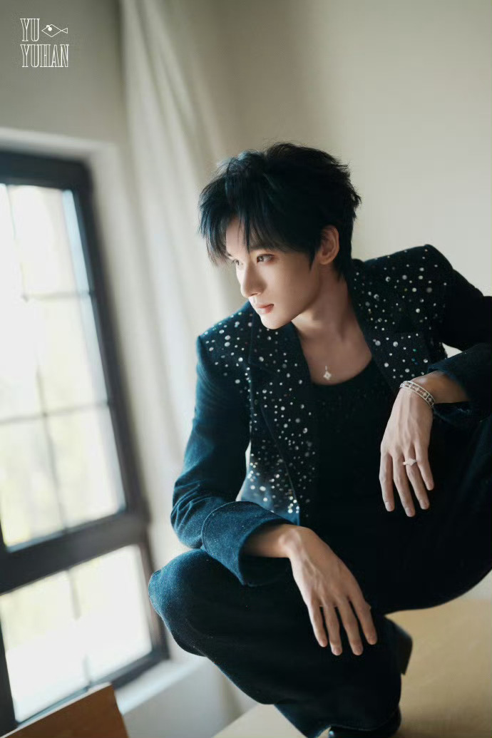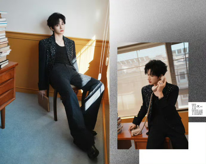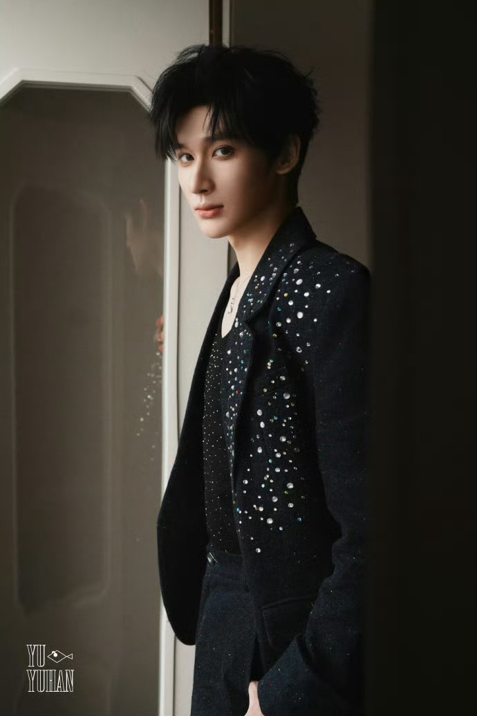 余宇涵亮钻黑西装余宇涵微博视界大会红毯造型🈶亮钻黑西装造型好帅身材和气质绝