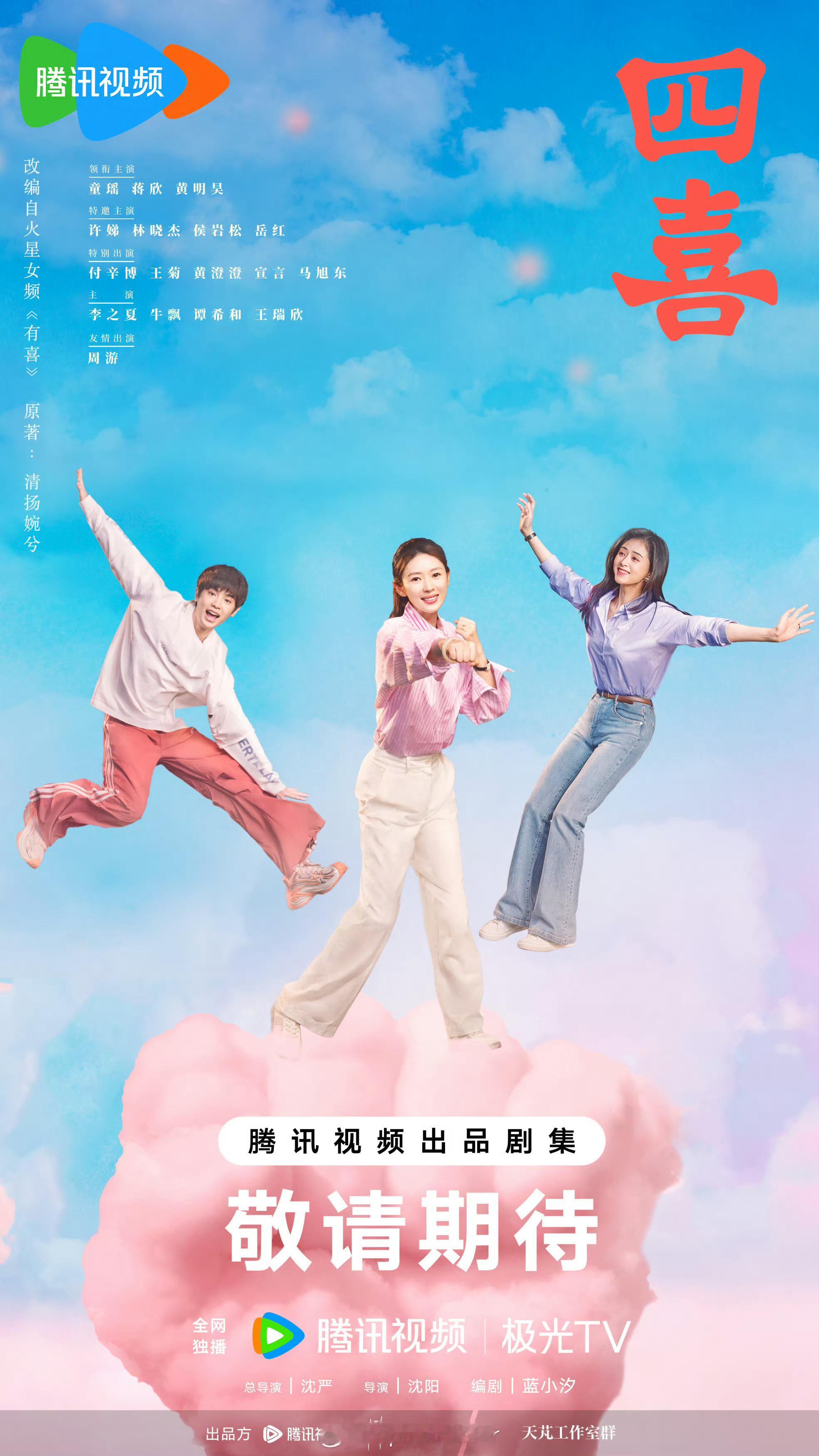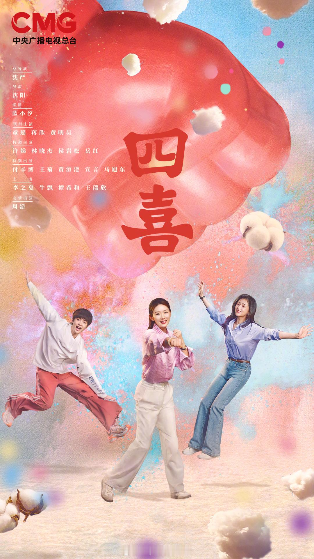 由沈严公司瞳盟影视出品,童瑶、蒋欣、黄明昊主演的都市剧《四喜》11.7央八黄金档开播。