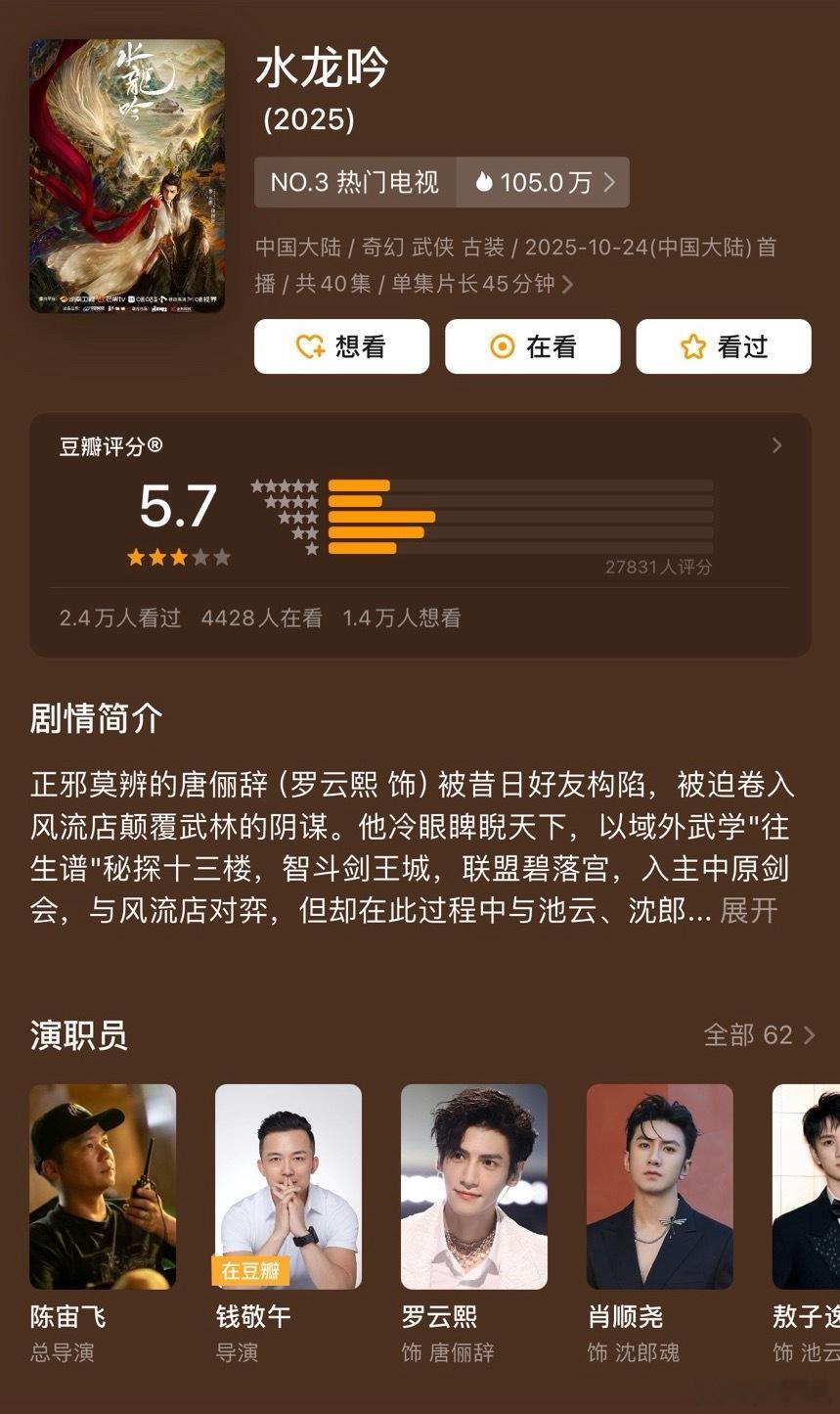 水龙吟暗河传豆瓣开分暗河传的豆瓣开分跟打分人数都秒了。。。🤔