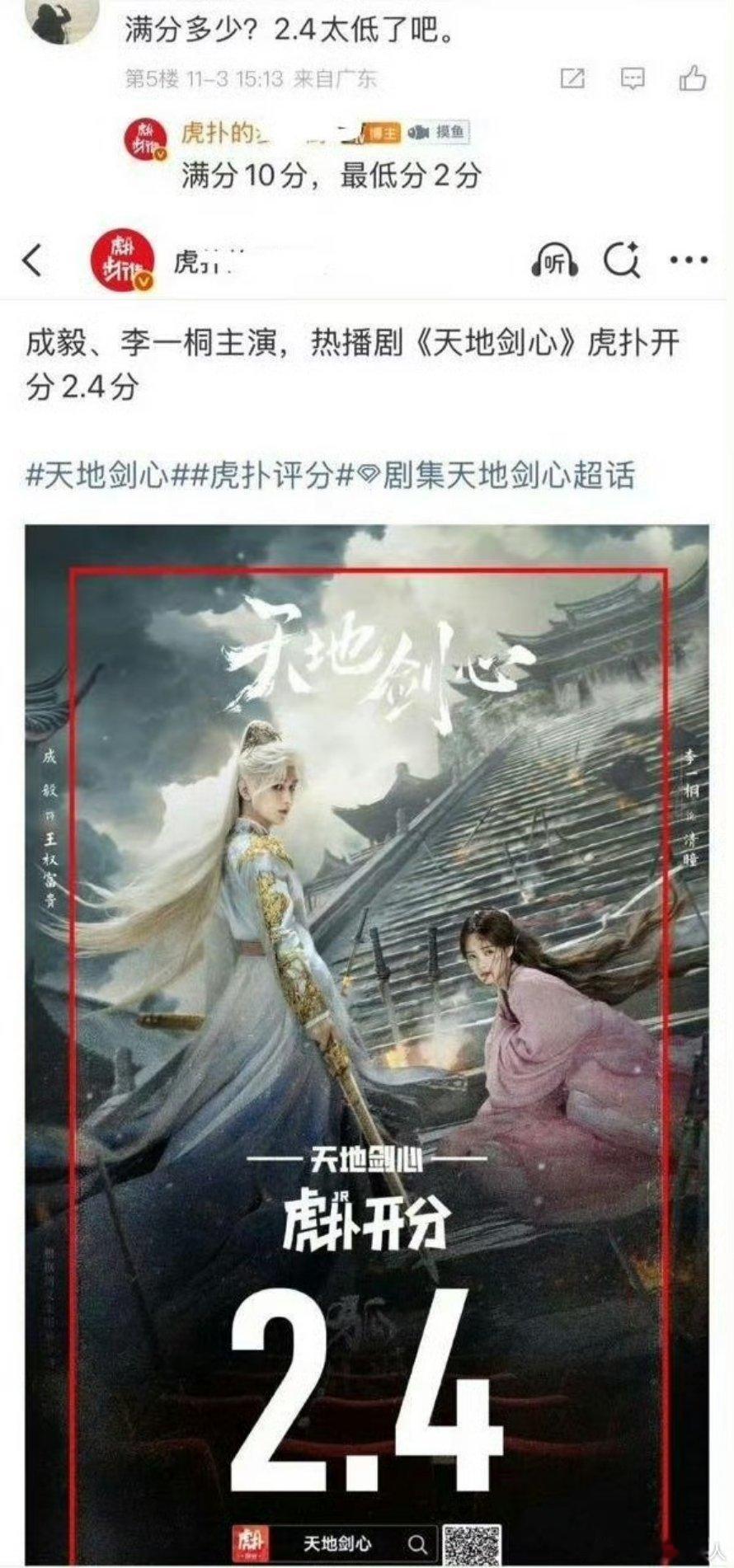 天地剑心虎扑评分2.4,满分10分,最低2分[doge]