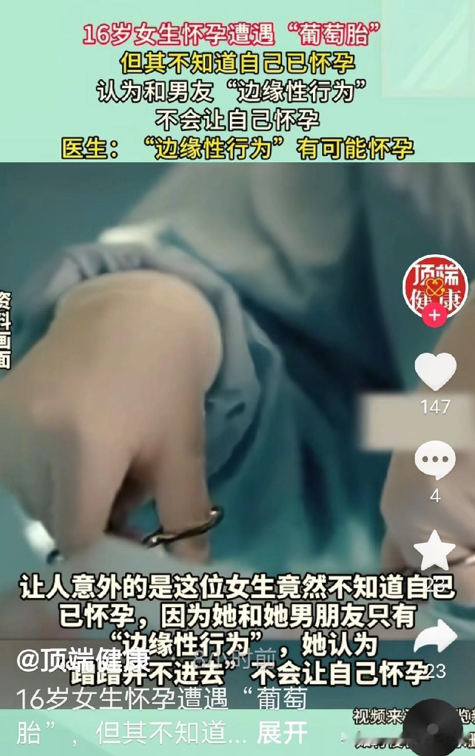 悲剧还是发生了!”广东广州,一16岁女孩发现自己停经两个月了。一天下午,女孩突然被送进医院,家属说她阴道反复大量流血10多天,医生一检查发现她是“葡萄胎”急忙给女孩送进手术室,还好抢救及时,女孩才没有生命危险。事后,医生问女孩怀孕是怎么来的?女孩支支吾吾说出了实情。 手术室里,医生发现女孩的子宫异常增大,里面根本不是正常胎儿,而是大量透明水泡连结成串,这就是典型的葡萄胎。葡萄胎分为完全性和部分性两种,这个女孩属于完全性葡萄胎,宫腔内充满水泡,没有任何胎儿组织。医生立即进行了清宫手术,吸出宫腔内所有水泡状组织,防止进一步恶变。 女孩苏醒后,面对医生的询问,她低着头用几乎听不见的声音说:“我...我以为只是抱一抱不会怀孕。”她从没接受过系统性教育,关于青春期的知识都是从同学间流传的小说和网络上零散获得的。她觉得身体变化是件羞耻的事,连月经推迟都不敢告诉妈妈,直到阴道大量流血才被家人发现送医。 葡萄胎并非正常妊娠,而是胎盘绒毛滋养细胞异常增生形成的良性肿瘤。这种情况在20岁以下年轻女性中并不少见,因为这个年龄段的卵巢功能尚未完全健全。数据显示,年龄小于20岁或大于40岁的女性发生葡萄胎的几率明显更高,这可能与卵巢功能不健全或衰退有关。 女孩住院期间,医生不仅治疗她的身体,还耐心解释葡萄胎的成因和后续治疗要求。葡萄胎清除后需要严格随访两年,每周检测血HCG值,确保稳定下降至正常水平。如果HCG持续不降或再次升高,可能意味着恶变,需要化疗。值得庆幸的是,大多数葡萄胎患者经过规范治疗后可以完全康复,不影响未来正常生育。 这起病例折射出青少年性健康教育缺失的严峻现实。调查显示,高达78.24%的青少年缺乏青春期性健康教育,多数人的性知识靠“自学”。当孩子对身体变化产生好奇时,如果无法从正规渠道获取科学信息,就只能转向网络或同伴间流传的零散知识,这些信息往往片面甚至错误。 性教育不是简单的知识传授,而是包括生理、心理、伦理道德和法律在内的全面教育体系。我国教育部已明确要求将性教育纳入中小学课程体系,规定初中阶段应学习青春期保健的基本知识和技能,提高预防性骚扰与性侵害的能力。这些政策在基层执行时却常常打折扣,很多学校对此避而不谈。 家长们往往陷入两难困境,一方面担心孩子缺乏自我保护意识,另一方面又受传统观念影响,觉得涉及“性”的话题难以启齿。这种沉默可能让孩子在关键时刻不敢求助,小问题拖成大麻烦。就像这个女孩,如果早期能及时就医,或许不必面临生命危险。 青少年性健康教育不是鼓励发生性行为,恰恰相反,它帮助年轻人树立正确的性观念,学会自我保护。当孩子了解身体变化的科学规律,明白哪些行为存在风险,才能做出理性选择,避免不可逆的伤害。 医院妇科门诊数据显示,近年来未成年妊娠病例有所增加,其中不乏类似葡萄胎这样的高危妊娠并发症。这些病例背后,几乎都存在性教育缺失的问题。社会不能等到悲剧发生后才后悔莫及,而应该建立学校、家庭、医疗三位一体的性教育支持体系。 这个16岁女孩是幸运的,她保住了生命和未来的生育能力。出院前,医生特别叮嘱她必须定期返院复查血HCG,严格避孕至少一年。许多葡萄胎恶变病例都源于患者忽视随访,认为清宫手术后就万事大吉。葡萄胎清除后最长需要随访两年,因为恶变可能发生在一年之后,甚至存在十多年后才恶变的极端案例。 每起青少年妊娠病例都在提醒社会,性教育不该是“选修课”,而应成为每个孩子的成长“必修课”。这不仅关乎个体健康,更关系整个社会下一代的福祉。当家庭和学校都能以坦然、科学的态度开展性教育,孩子们才能获得正确的知识和保护自己的技能,避免类似的急诊抢救悲剧重演。 各位读者你们怎么看?欢迎在评论区讨论。