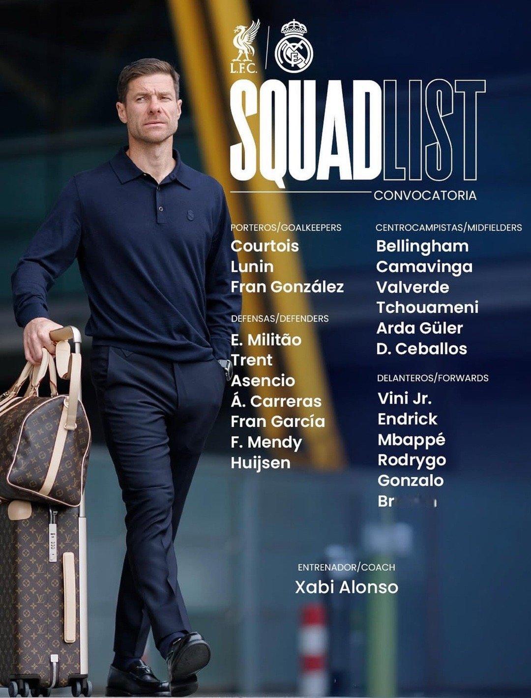 利物浦vs皇马 皇马大名单出炉💪
