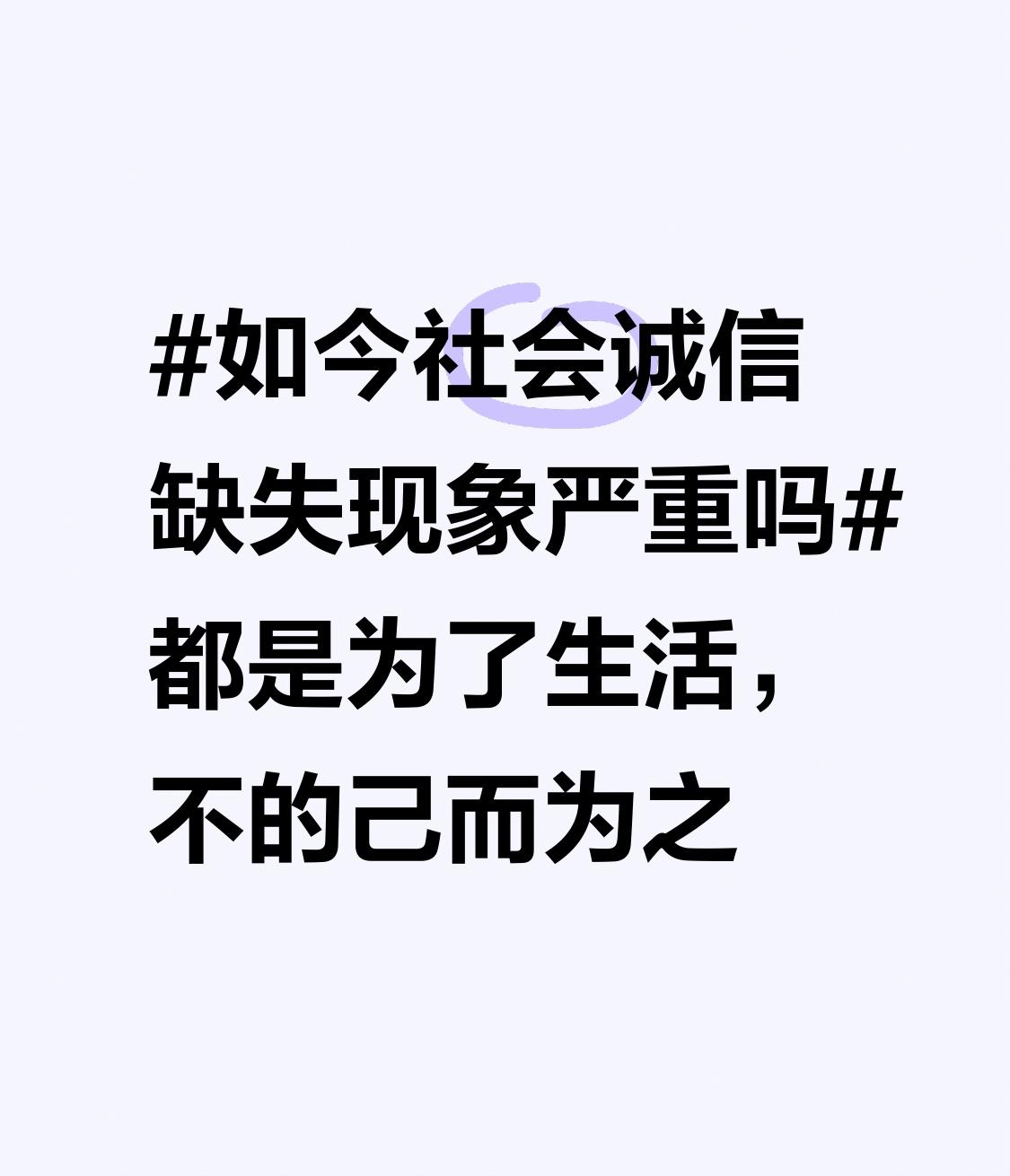 如今社会诚信缺失现象确实挺严重的。以前谁家有难,不等开口就有亲友邻居主动帮忙,现在帮忙都得小心翼翼,生怕“惹事上身”。过去地里摘的蔬果,随手擦擦就能吃,现在不仅口感差,还得削皮才放心。以前卖家称重不用质疑,现在称重有误差都成正常现象了。 出门在外也处处要提防。以前火车站台妇女卖自家做的吃食,大家从不担心不卫生或被骗,钱没找火车开了,人家还追着塞钱;现在住酒店,毛巾、热水壶都不敢用。再看看“三角债”问题,毁约跟玩似的。不过像新加坡和德国庞巴迪公司,靠诚信赢得市场,也说明诚信是值钱的。大家有时候说不得已而为之,但缺失诚信真的会让社会变冷漠。