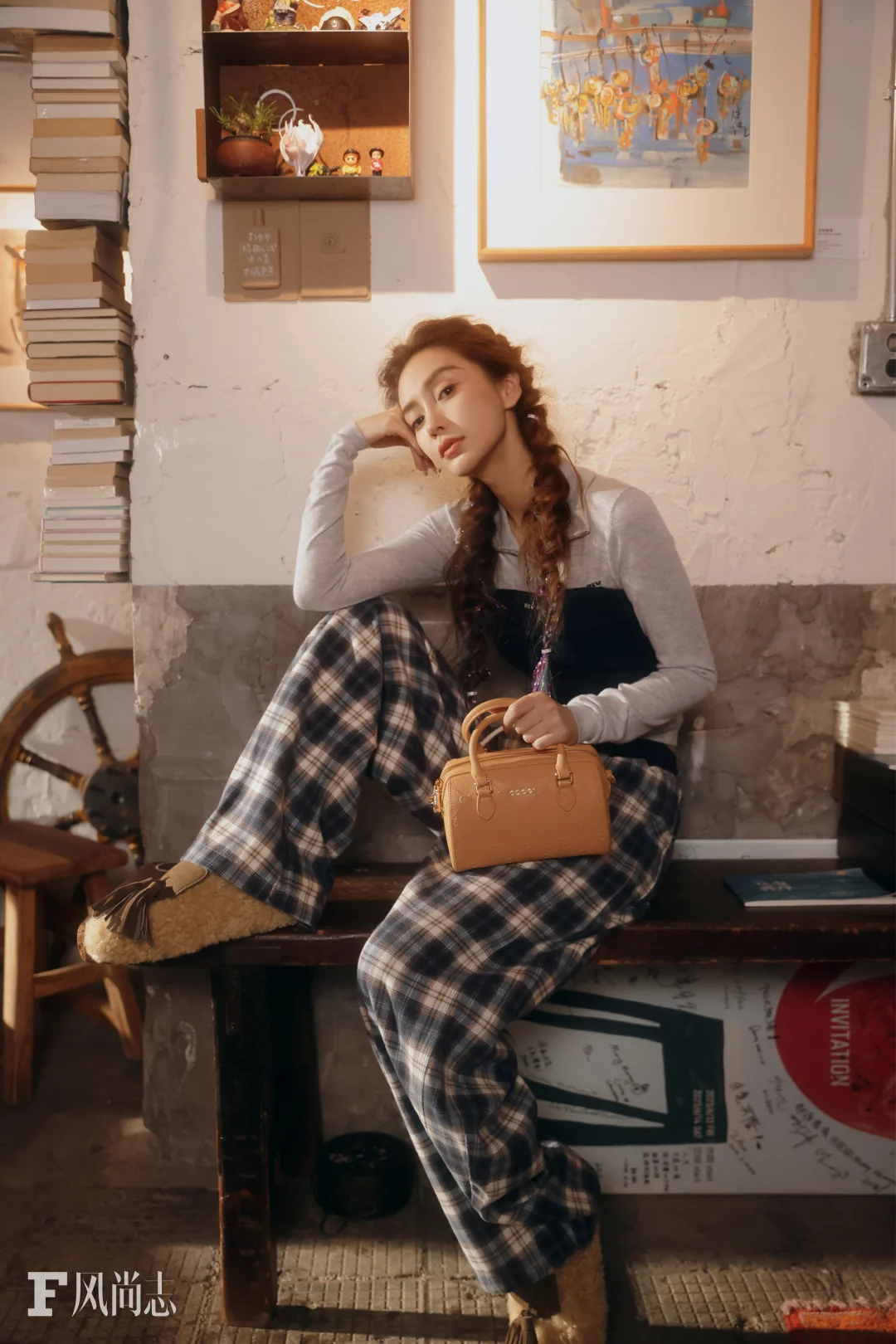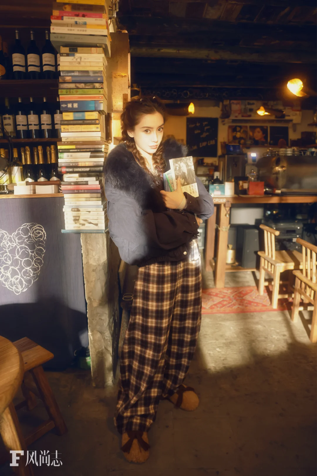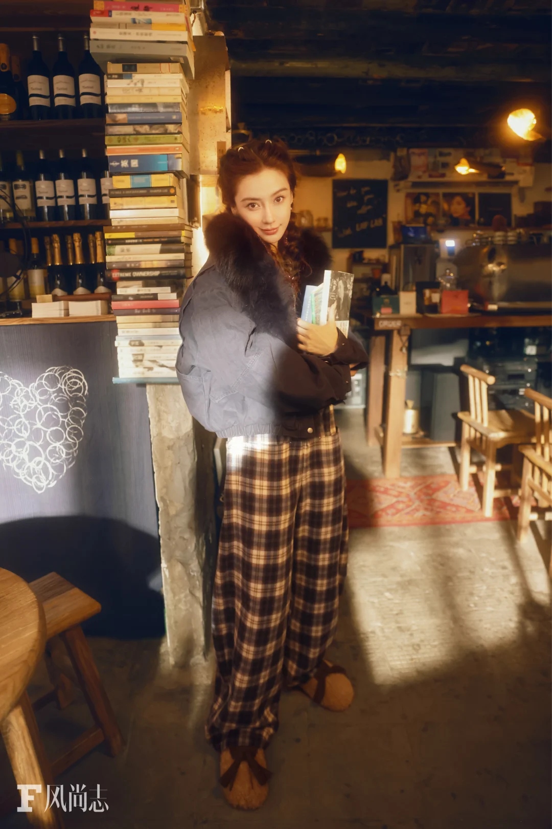 秋冬降温,蓬松毛领呵护脖颈,兼具风度与温度,内搭同系列长袖毛衫,软糯亲肤。下装选择复古格子裤,baby轻松穿出慵懒文艺范,脚踩一双毛毛平底鞋,柔软的触感让每一步都像踩在云端,营造出不费力的秋冬慵懒感。 #angelababy #REVAN #杂志大片 #明星同款 #Angelababy杨颖