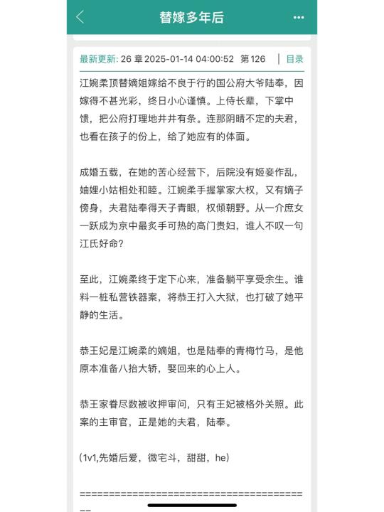 故事还借庶姐的口,讲述了女主上辈子的一生,和男二幸福寿终正寝的一生,跟男主完全没有交集。但其实女主的性格很坚韧,不管跟谁在一起都能把日子过好。后续还交代了男主的身世,以及男主逐渐对女主的心动的过程,整体来说用来打发时间还是可以读一读的。