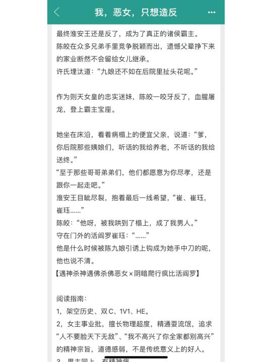 后来女主得胜归来,亲爹和哥哥们正在厮杀,女主直接一锅端,留下病重的亲爹,自己当上了女帝,开启了属于自己的时代。