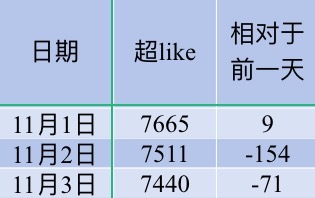 昨天的超喜欢和发帖人数还有今天的超喜欢底数就在这里咯,都稍微的又下降了
