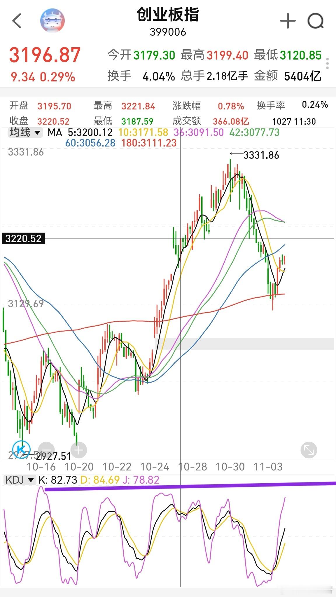 今天创业板压力位是3220,再高一点是3235,到了这里是一个高抛参考点。半小时kdj也会到高位,修复速度一下后,再看结果。