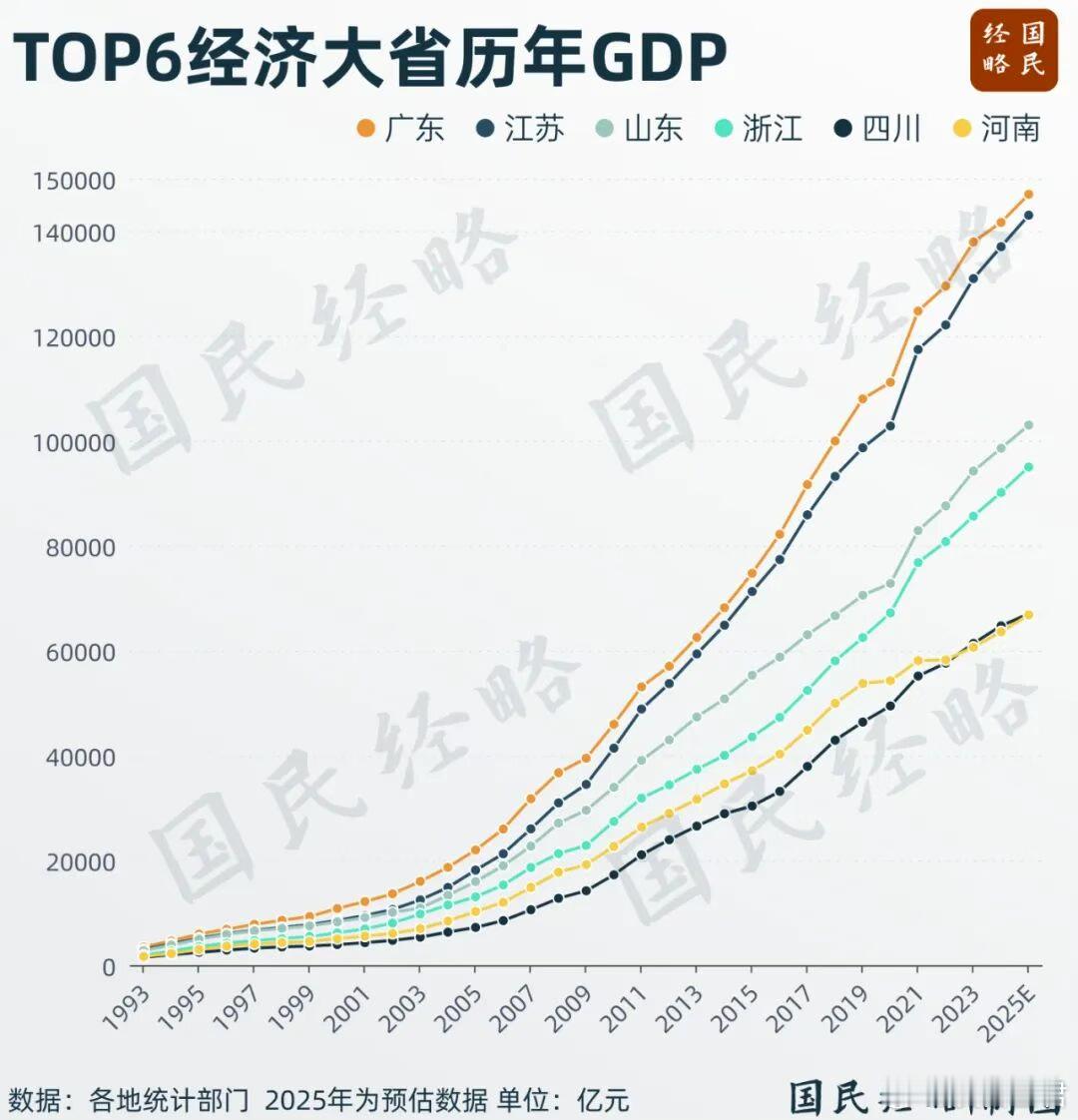 10万亿大省,要扩容了。GDP破10万亿,放在全球各大经济体中,可排在第17位。早在2019年、2020年,粤苏先后站上10万亿,广东已朝着15万亿迈进。今明两年,山东、浙江有望先后跻身“10万亿俱乐部”,山东今年将成为北方第一个10万亿大省。前三季度,山东GDP达7.71万亿,同比增长5.6%,位居前列,全年破10万亿,几无悬念。紧随其后的浙江,扛住关税战压力,加之受益于人工智能革命,今年GDP或达9.5万亿,明年大概率挑战10万亿。这其中,山东突围有着更为重要的意义。
