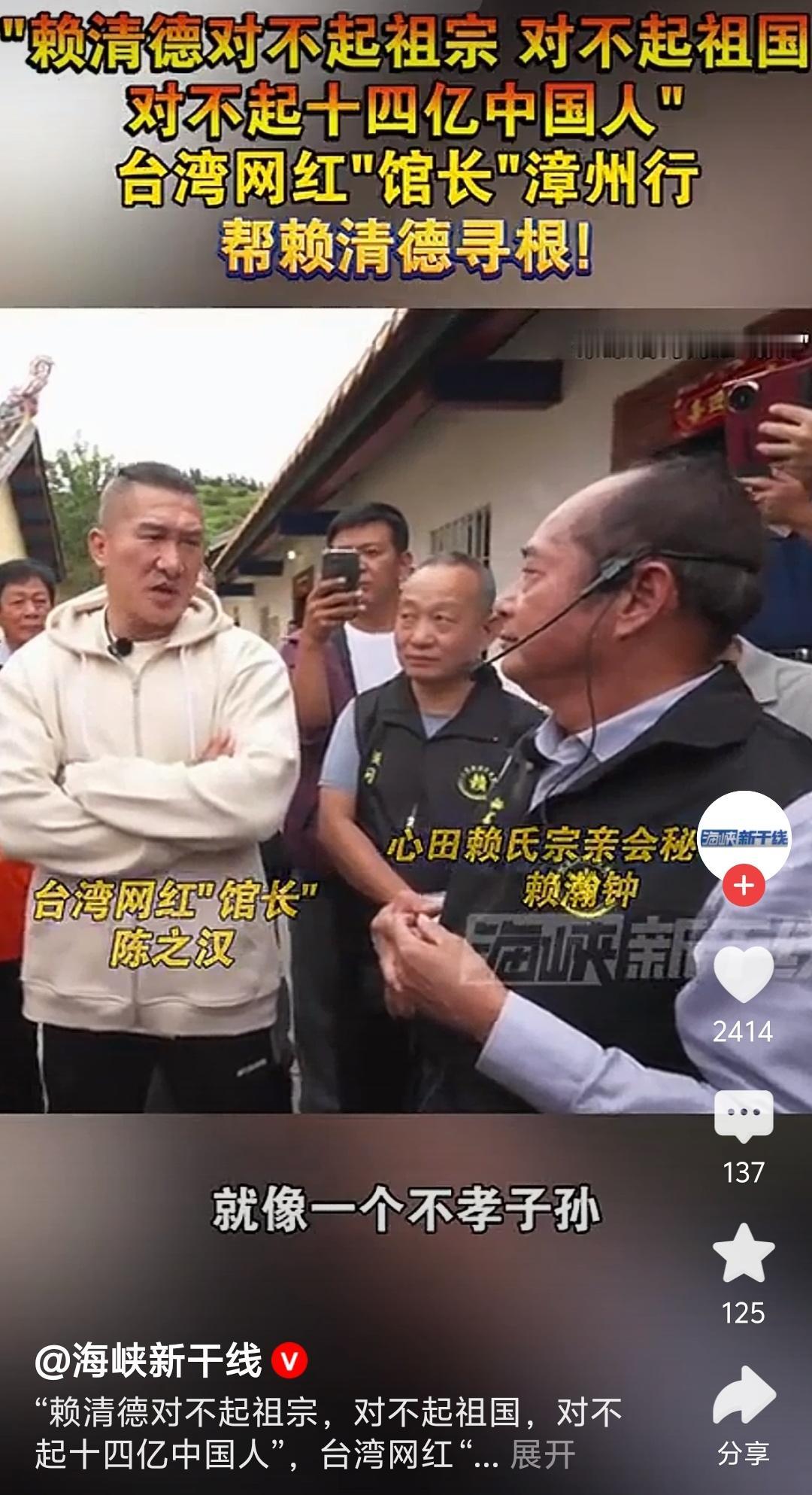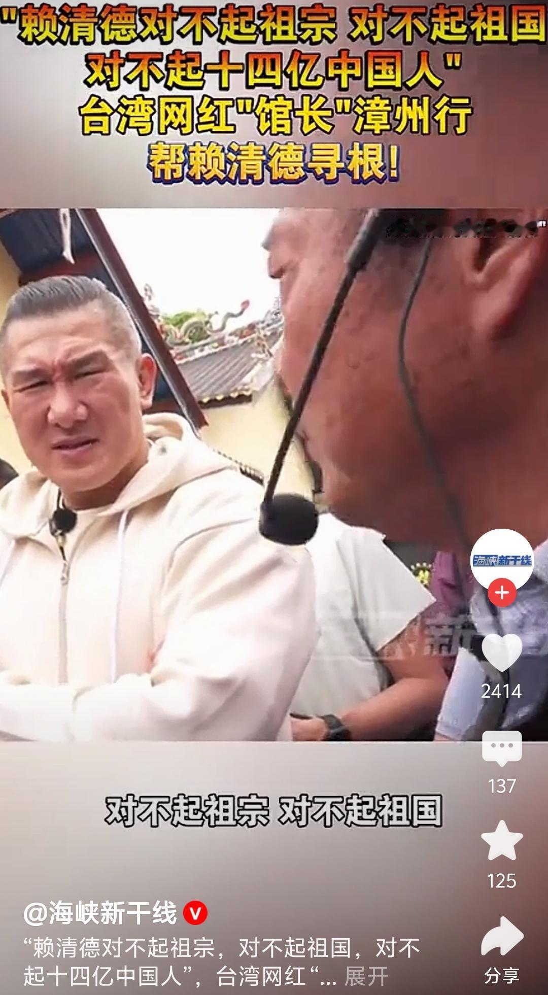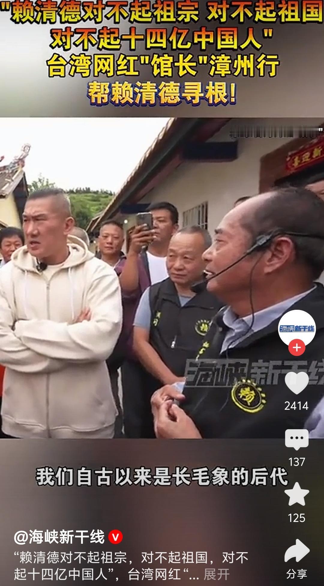 馆长这次帮赖清德寻根,这个事怎么说呢,咱们中国人的传统文化认知里,寻根一般是自己去认祖归宗,所以说呢,馆长此行,与其说是帮赖清德,比直接骂赖清德更狠。 对于馆长的行为,从民族大义上讲,肯定是支持的,等于把赖的底裤都拔了,再抽了其“长毛象”的厚皮,其实还是正宗的中国骨,中国根,赖姓还是出自于姬姓,周天子之后,你说正不正宗。但是,以赖清德的卖台个性,是不会回应此事的。 馆长的行为对统有多大的意义姑且不说,毕竟这是个人行为,赖大概率也不会回应,但馆长的剥皮行为,会不会引发赖清德的报复呢?会不会搞绿色恐怖? 馆长,保重啊! 馆长 馆长帮赖清德寻根