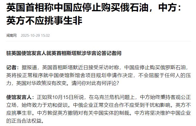 英国首相斯塔默表示,已经与特朗普电话沟通过,一致认为中国不能够继续购买俄罗斯石油,以迫使俄罗斯做出结束战争的举动。 这话听着挺有道理,好像找准了要害,但仔细琢磨琢磨,里面全是把霸权当真理的荒唐逻辑,压根没搞明白全球能源格局到底是怎么回事,更没掂量过中国在里面的分量。 先得说清楚,这场持续近四年的冲突对俄罗斯来说,确实是场烧钱的硬仗。战场上每天消耗的弹药、士兵的补给、武器装备的维修保养,哪一样都得砸真金白银。 而支撑起这笔巨额开支的,说到底还是俄罗斯的石油出口——这个国家的经济结构里,能源出口占了外贸收入的半壁江山还多,石油更是其中的重中之重,堪称实打实的“钱袋子”。 斯塔默和特朗普能盯上中国,说白了是看准了一个事实:俄罗斯所谓的“抗制裁能力”,很大程度上是靠中国这个大市场撑起来的。西方刚开始对俄搞能源制裁的时候,效果确实立竿见影,俄罗斯石油出口量一度暴跌,国际市场上甚至出现了“俄油无人问津”的说法,卢布汇率也跟着大起大落,经济形势相当紧张。 但转折点就在中俄能源合作的深化上,随着双方长期协议的落地和运输渠道的拓宽,俄罗斯的石油开始源源不断地运往中国,不仅稳住了出口量,还找到了比西方市场更稳定的依托。 有数据能直观说明问题,2024年前十个月,中国在俄罗斯对外贸易中的占比已经冲到了34%,要知道2021年的时候这个数字才18%,短短三年翻了快一倍。 远东输油管道每天满负荷运转,从摩尔曼斯克等港口出发的油轮也排着队往中国港口跑,这些石油换成人民币和美元后,确实成了俄罗斯维持正常运转的重要支撑。 也正是因为看到了这层关系,斯塔默和特朗普才觉得找到了“命门”,觉得只要把中国这个补给线掐断,俄罗斯的经济就会崩盘,前线自然就撑不下去了。 但这俩算来算去,偏偏漏算了最关键的几点,把事情想得太简单了。首先他们没搞明白,中俄之间的石油贸易,从来不是什么“单方面援助”,而是实打实的互利共赢。中国作为全球最大的能源进口国,每年要进口十几亿吨石油,保障能源供应安全是头等大事。 以前中国的石油进口来源地比较集中,中东和东南亚占了很大比例,跟俄罗斯深化合作,正好能优化进口结构,降低对单一地区的依赖,而且俄罗斯石油的价格还比国际基准价略低,质量也稳定,对中国的炼油企业来说性价比很高。说白了,中国买俄罗斯石油,是为了自己的能源安全,不是给谁“输血”。 更重要的是这种贸易完全符合国际贸易规则,是主权国家之间的正常商业往来。西方总喊着“市场经济”“自由贸易”,可到了自己不乐意的时候,就想逼着别人放弃正常贸易,这本身就是赤裸裸的双重标准。 斯塔默和特朗普只想着掐断俄罗斯的财源,却压根没考虑过中国的利益——要是突然停止进口俄油,中国的炼油厂就得停工待产,相关产业链上的几十万从业人员会受影响,国内成品油供应也可能出现波动,这种损人不利己的要求,怎么可能让人接受? 他们还高估了“断供”的实际效果。就算退一万步说,中国真的停止购买俄油,俄罗斯也未必就会陷入绝境。这些年俄罗斯早就开始布局能源出口多元化,除了中国,还在跟印度、土耳其等国深化合作,印度现在已经成了俄罗斯石油的第二大买家,虽然量不如中国,但也是重要的补充。 而且俄罗斯还在扩建通往中亚和南亚的输油管道,就算失去中国市场,也能通过其他渠道分流一部分出口量,虽然收入可能会减少,但绝不会像斯塔默和特朗普想的那样“瞬间崩盘”。 之前乌克兰停止过境运输俄罗斯天然气的时候,斯洛伐克、匈牙利等欧洲国家就因为能源价格暴涨引发了通胀,这个教训就在眼前,斯塔默和特朗普不可能不知道,只是故意选择性忽略而已。 其实明眼人都看得出来,斯塔默和特朗普的这个提议,更像是一种政治姿态,想通过给中国施压来显示“西方团结”,顺便转移国内矛盾。他们心里清楚,中国不可能因为这种不合理的要求就放弃正常的贸易合作,毕竟中国早就不是能被随便拿捏的国家了。 退一步说,就算真的想通过能源手段影响局势,也该从根源上解决问题。西方要是真的希望停火,就该停止向乌克兰输送武器,而不是逼着第三方放弃正常贸易。 战争的根源是复杂的利益纠葛,靠掐断某个国家的能源出口来逼其投降,这种思路本身就充满了强权逻辑,也不可能真正解决问题,反而会激化矛盾,让局势更难收拾。 斯塔默和特朗普的提议,本质上是想把能源当成政治武器,这种做法只会破坏国际合作的基础,最终害人害己。