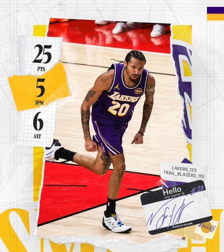 还以为这场比赛杨瀚森会有大把的上场时间。 湖人VS开拓者,东契奇、里夫斯都因伤缺阵,加上本赛季还一直在养伤的詹姆斯,等于是核心全部缺阵。 原本以为,3连胜的开拓者这一场要拿下残阵湖人,并且比赛早早进入垃圾时间,这样,杨瀚森能够有些出场时间。 没想到,开拓者不给力,反倒是以115-123输给了残阵湖人,开拓者内线已经有克林根和罗威的情况下,杨瀚森只能又一次枯坐板凳。而且,湖人还是背靠背出战。 这场比赛,湖人是全民皆兵,人人都有发挥,连布朗尼都进三分了,这是他本赛季首记三分,关键还送出6记助攻,并列全队最高。 艾顿伤愈复出面对旧主,打出了他曾经说过的“统治者力”。全场19投14中,罚球2罚中1,拿下29分10篮板2助攻3盖帽的豪华表现。 当然,要是在制造杀伤这块侵略性再强一点,统治力就更高了。 八村塁同样是球队进攻支柱,基本把握了进攻机会。全场15投10中,三分4中2,罚球6中6,得到28分4篮板。 最大的惊喜无疑是双向合同球员尼克-史密斯。昔日的全美第一高中生,在NBA混得并不如意,在黄蜂打完2个赛季后,才21岁就只能签双向合同了。 这场比赛,史密斯替补上场27分钟,15投10中,三分6中5,得到25分6篮板2助攻。 据说,史密斯还是带着病上场的。 尼克-史密斯也证明了,NBA确实不缺能得分的球员。