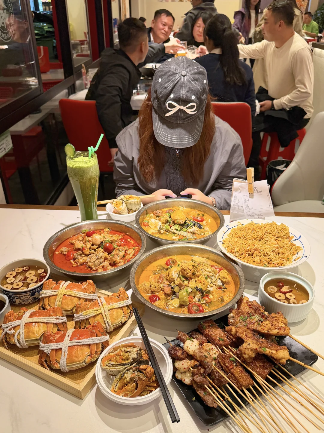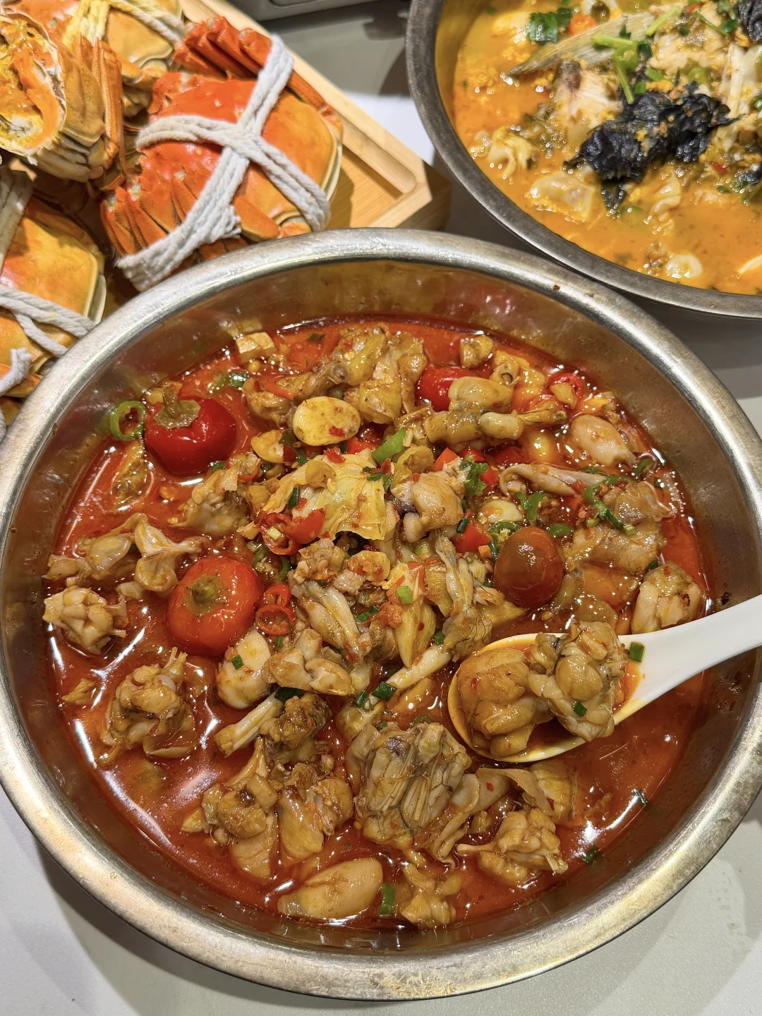 跟着方家翊打卡的,真的没踩雷!! 能在四方坪开12年!真的是靠本地人口口相传🔥起来的~叫📍西西家,再就业男团芒果台明星主持人都来打卡过~ 终于在长沙也能吃到4.5两大闸蟹…搭配了拆蟹工具、蟹醋和红枣姜茶…很贴心~还有鱼籽鱼泡火锅和口味牛蛙煲,太适合降温的长沙了,越煮越入味!烧烤也是真碳烤,吼吼吃!