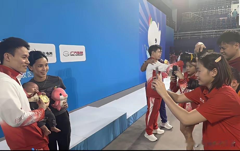 都说被小孩喜欢的人都很善良。全红婵在比赛现场,抱着自己师兄的孩子。真的好像一家人。全红婵一直都很招小朋友喜欢。他自己也像一个孩子一样。不管经历了多少训练的苦,不过比赛有多紧张,他的脸上都是充满了微笑。