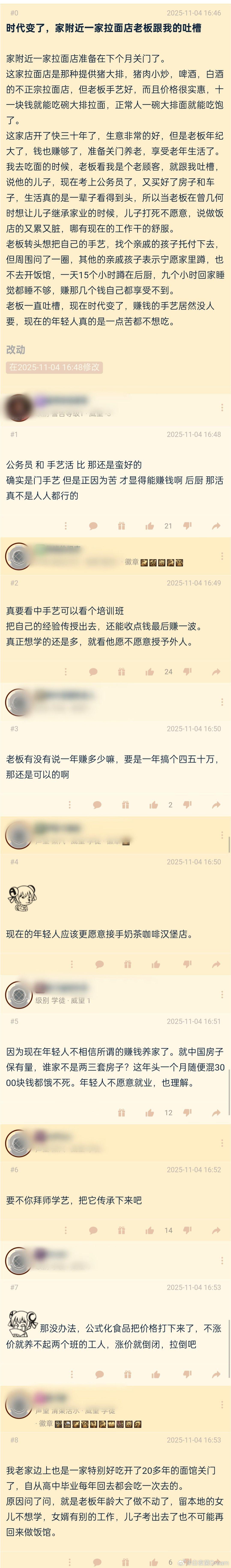 老板吐槽:现在时代变了,赚钱的手艺居然没人要,现在的年轻人真的是一点苦都不想吃。热点观点