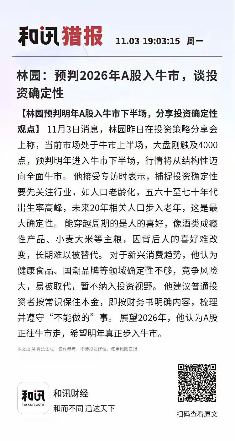 明年A股要涨到5000点,高盛:中国股市正迈进增长期 AH股指数明年底潜在回报达30%,高盛这个潜在的回报,A股明年涨30%,那大盘指数大概率就是5300点左右!目前,A股已经来到了4000点上方,春节之前还有三个月能涨300点,应该是可以的,可以当前指数在4000点,来回震荡是短线市场的调整,慢牛行情的趋势不变,外资也在积极看多中国资本市场,看多中国股市! 所以,对于当前的中国股市,我们不应该恐高,应该理性看待中国当前市场的发展前景!毕竟,中国经济依然保持5%的增长,所以中国的股市,中国的资本市场是严重被低估,依然属于价值的洼地!