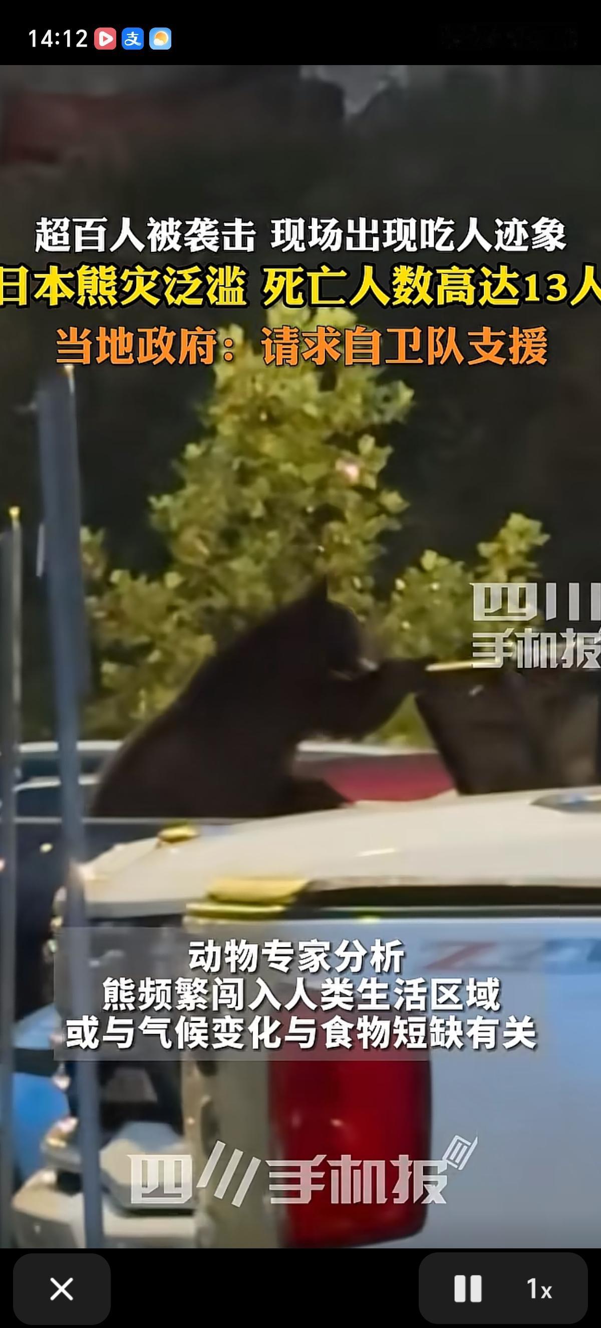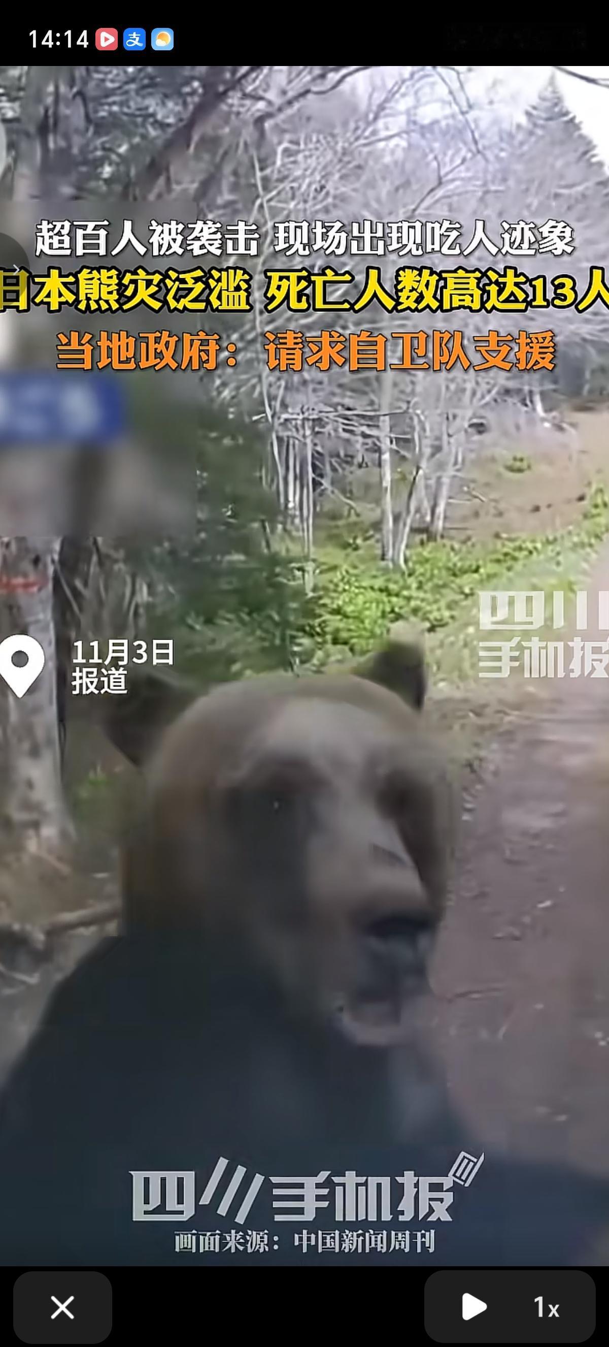 近期,日本多地持续遭遇严重熊灾,已造成13人死亡、超百人被袭击受伤,部分袭击现场