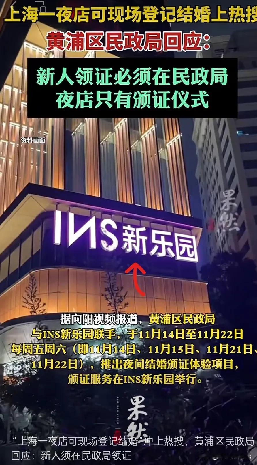一夜之间 上海的丈母娘要紧张了,因为要“出事儿了” 你敢相信吗?在震耳欲聋的电音和闪亮的激光束中,你和“灵魂伴侣”交换誓言。 然后“啪”一张热腾腾的红色结婚证就到手了!最近,黄浦区民政局与年轻度相当高的ING新乐园联手,推出夜店结婚颁证体验项目,设有状态确认环节,确保双方完全清醒 从11.14日到11.22日的每周五周六为期四天的婚姻登记中心的登记员将在INS新乐园举行颁证服务,每日预约名额有限,有想为婚姻加冕的“潮人们”请提前预约 黄埔区民政局要和INS新乐园合作了,要在夜店里登记结婚了,这可把准丈母娘给急坏了,晚上去夜店登记结婚,谁知道他们在那样的环境下清醒不清醒啊,这要是醉酒后登记结婚,那可就闹大了。 结婚大事,成年人也不会草率,登记结婚也不会草率,当然,民政局出来解释说是“辟谣”新人必须在民政局领证,夜店只有颁证仪式!现场绝对不会有登记领证环节! 网友担心说:即便现场有再三确认是否清醒再做决定的环节,可是在“灯红酒绿迷人醉”的状态下,难免会有人冲动而做决定的咋办呢?对此大家有什么看法吗?评论区聊聊!