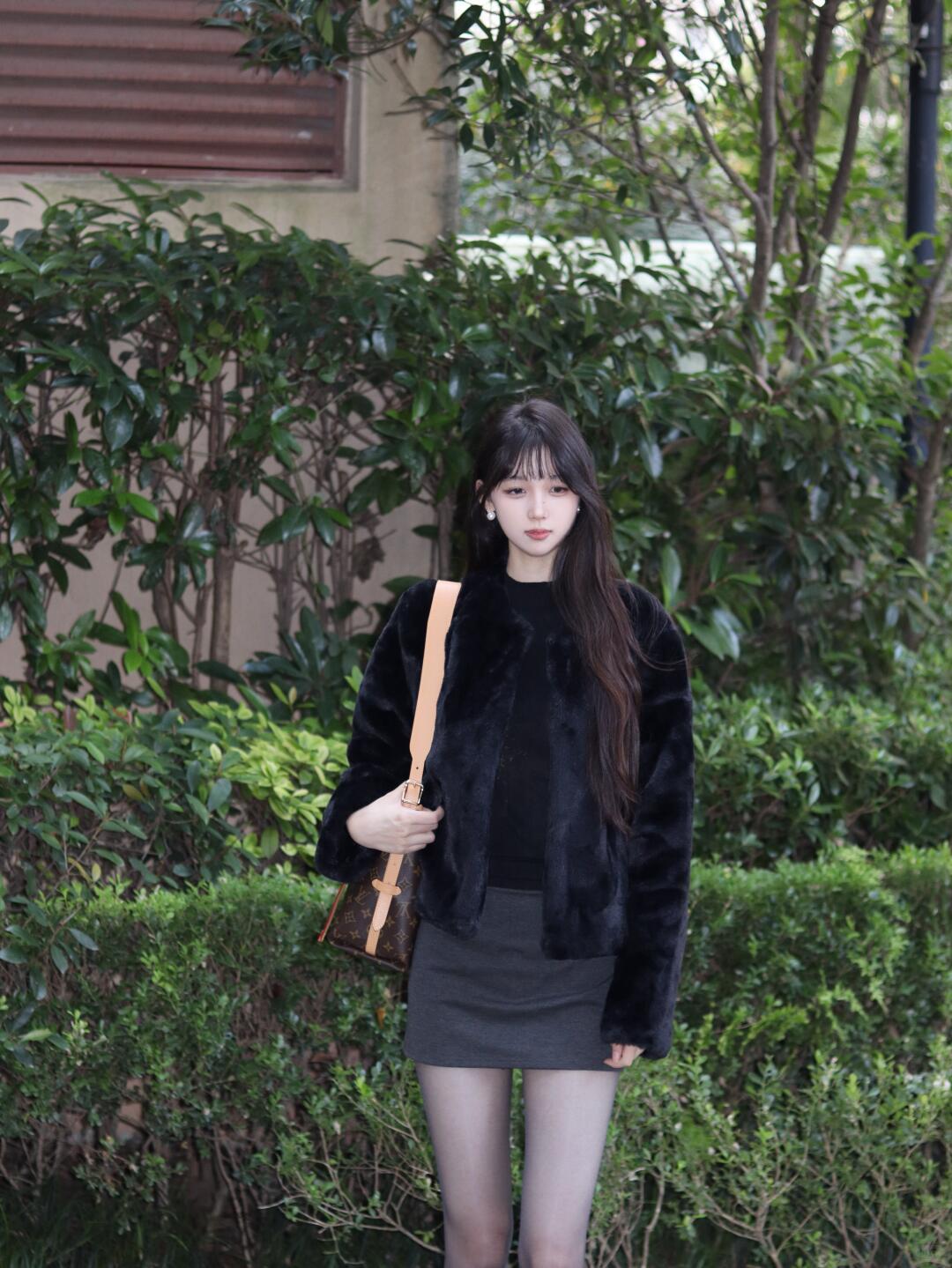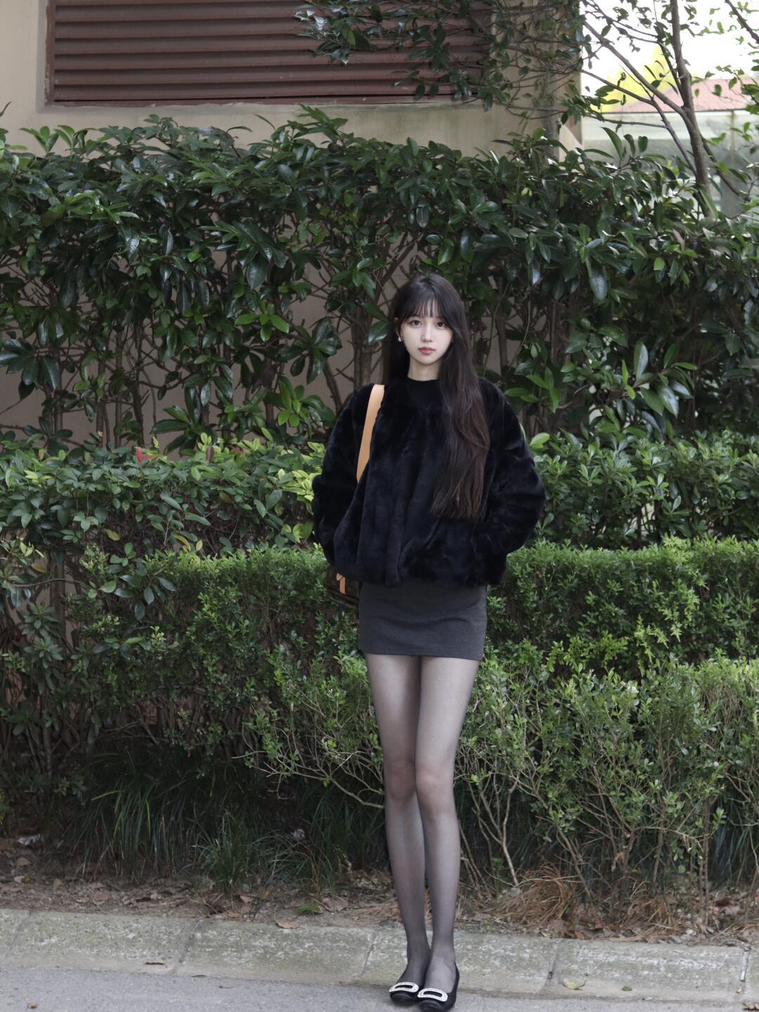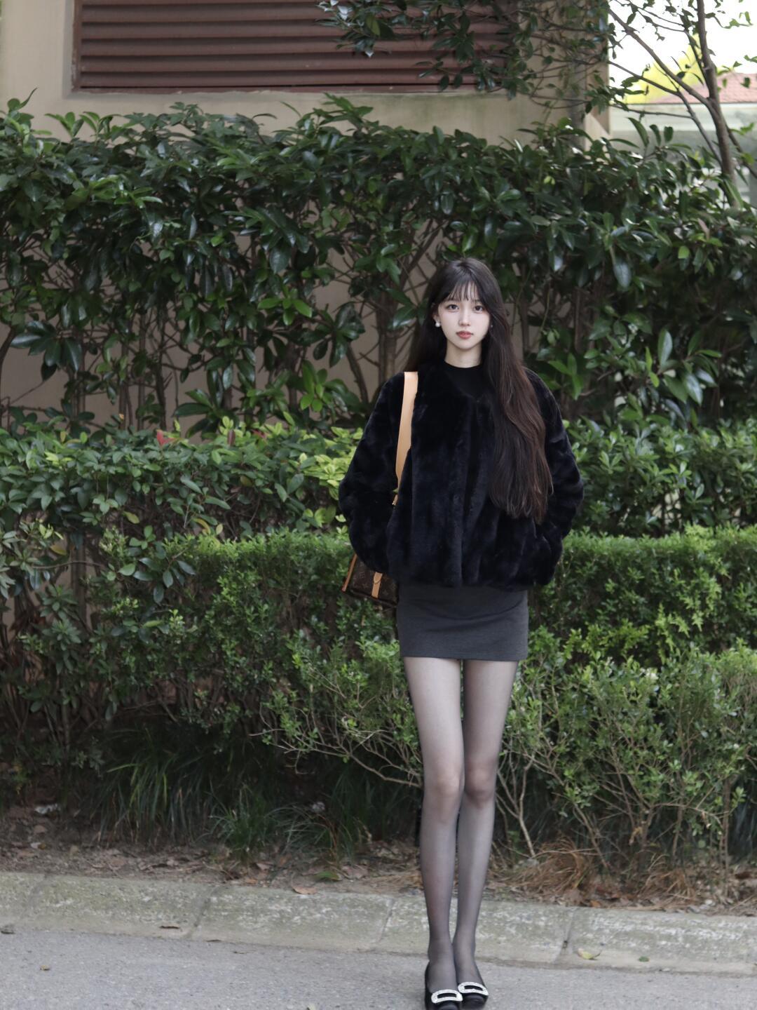 秋日穿搭指南:毛绒外套+短裙,时尚又保暖!穿搭 性感
