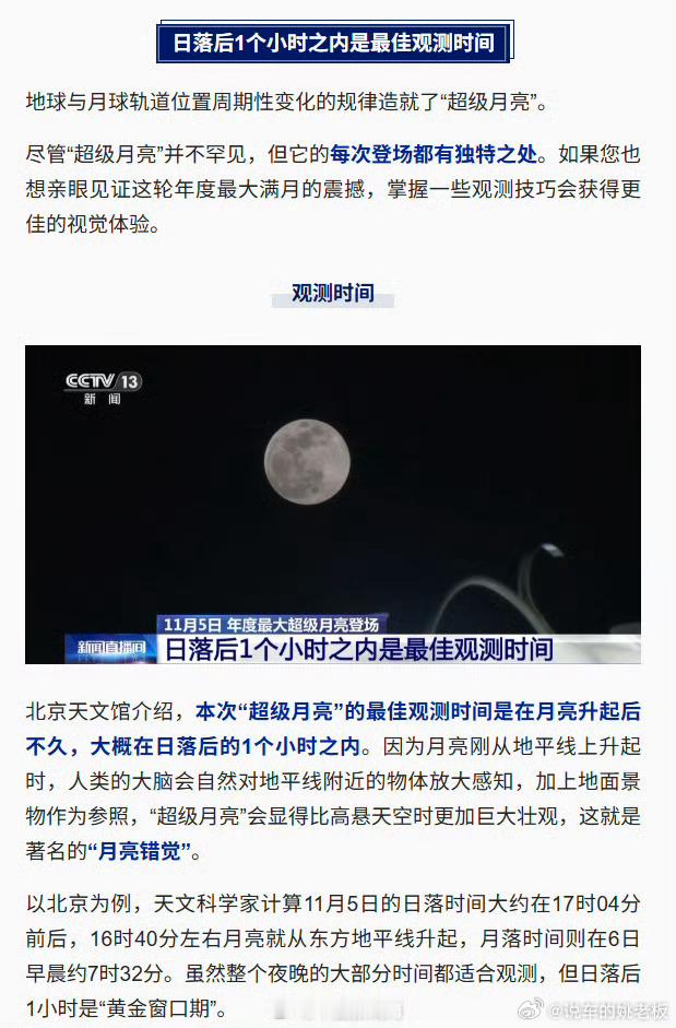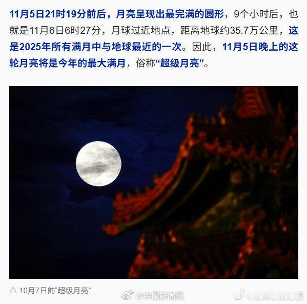 2025最大超级月亮今晚登场据天文学家预测,11月5日,当夕阳西沉,夜幕拉开,本年度最大的“超级月亮”将现身夜空。11月5日21时19分前后,月亮呈现出最完满的圆形,大家记得合理安排时间,不要错过!