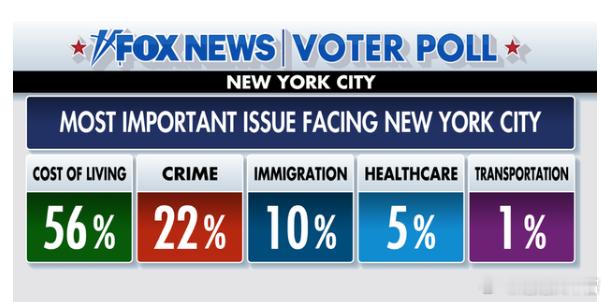 在最后阶段,福克斯进行调查,发现56%的纽约市选民称他们的关注点在于住房负担能力,而犯罪率仅为22%,仅有10%的人关注移民问题,医疗保健为5%,交通为1%。