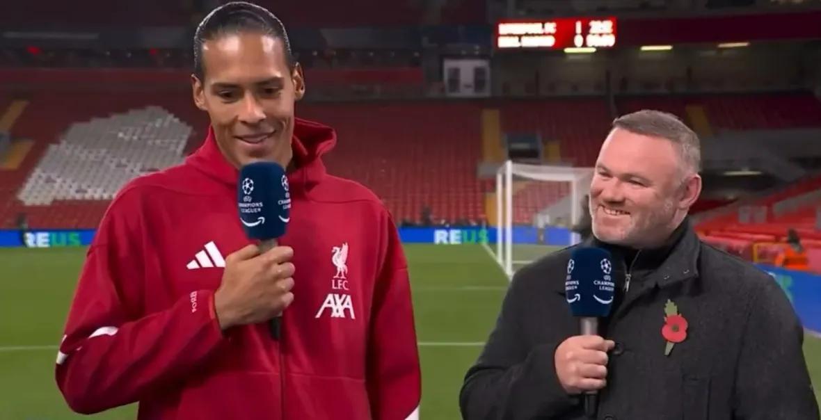 利物浦1比0皇马 英格兰的欧冠转播机构还挺会安排,赛后让鲁尼在场边采访范戴克。这真是冤家路窄啊!