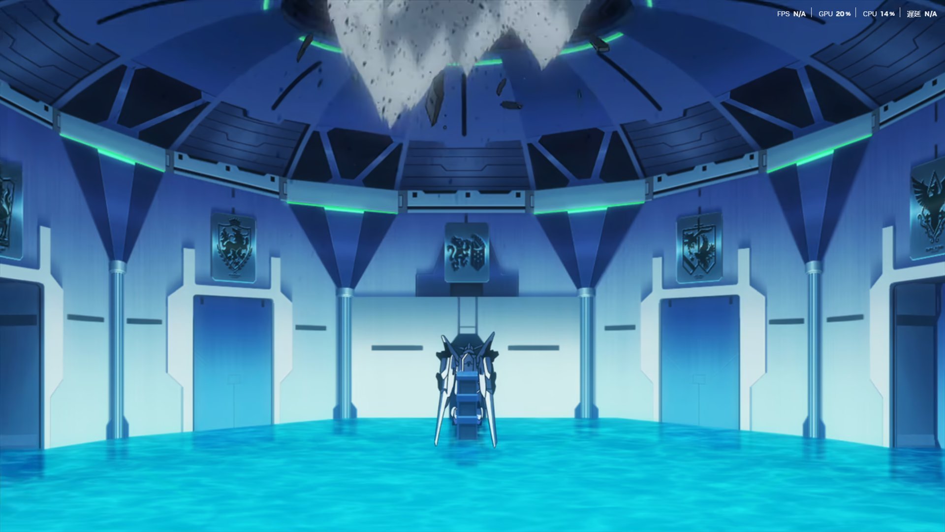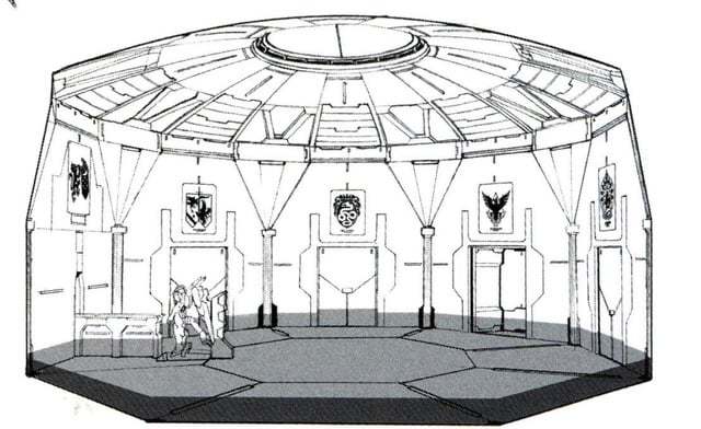 可以看到存放着巴耶力和七星家族管理高达的圣堂,巴库拉赞家徽对应的闸门打开着、格纳库空空如也