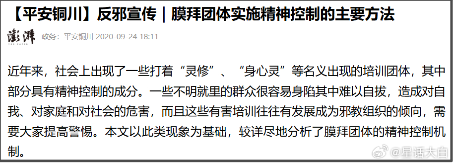 邪教很擅长干的事情,就是用一些看上去非常正向的美好词汇,去包装自己的反人类行径。