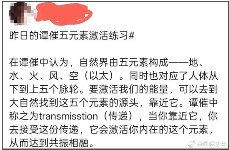其中就提到所谓“谭催五元素”是什么,还说什么“到大自然找到这五个元素的源头。”