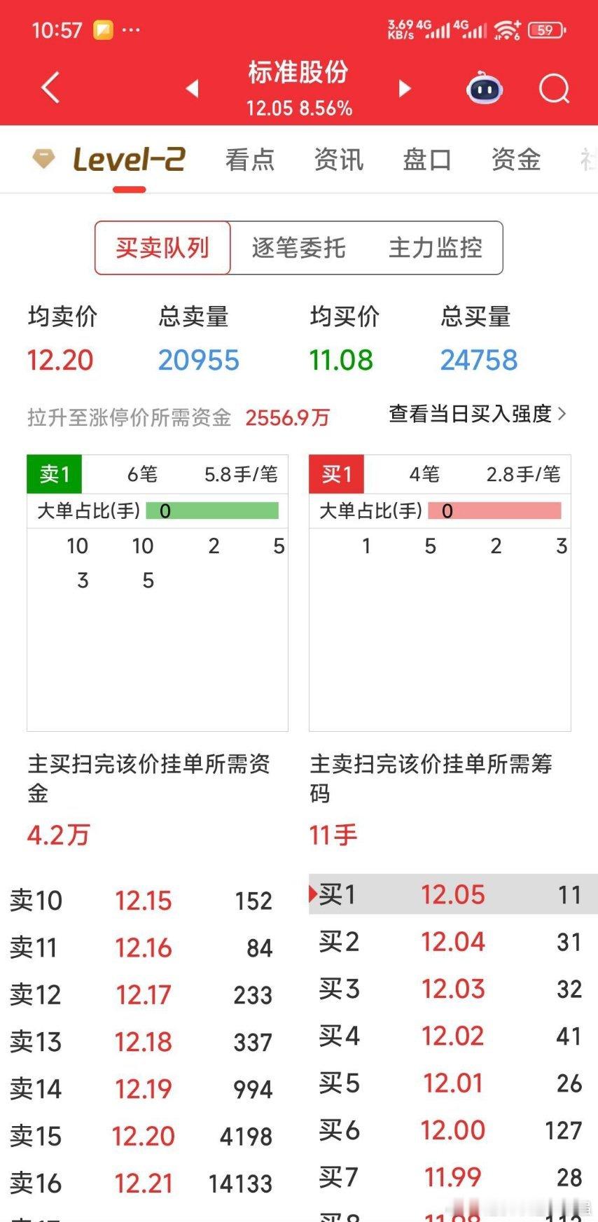 标准股份涨停板价12.21元才挂14133手,看着,我叫朋友给他吃掉。明天开始秒板拉升。