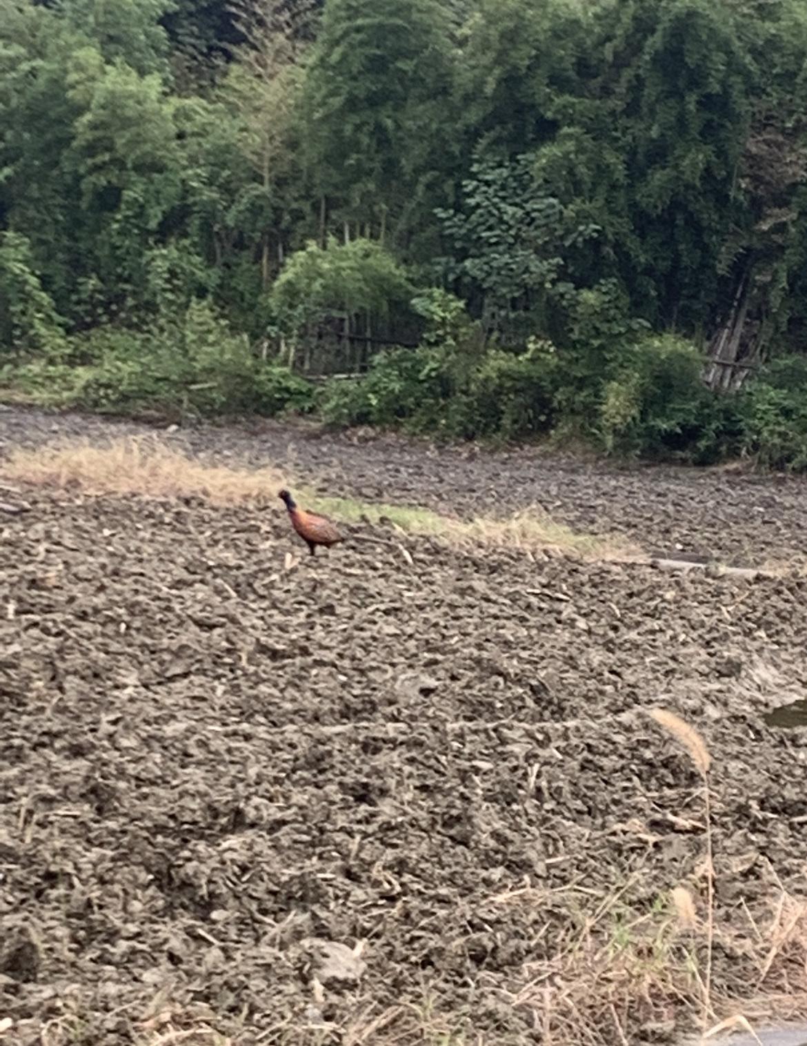 成都的环境真是太好了,市区公园惊现野鸡! 周末到三环旁边的公园骑车,时至初冬时节,田已经翻过,撒下的菜籽已经冒出嫩芽。 天气阴冷,有点或有或无的小雨,人很少,几个老大爷在放风筝。 这时,忽然发现田里有什么东西在动,定睛细看,居然是一只很漂亮的野鸡在觅食,它边走边捉食,我想拍清楚的照片,悄悄地靠近,它仿佛发现,连飞带窜地跑远了。 上次,我在这个公园还偶遇了老鹰,开始也是在地里,大概是抓个什么东西,然后从地里盘旋飞起,第一次那么近看到老鹰起飞。就那么目送着老鹰飞高飞远。 现在生态真好!