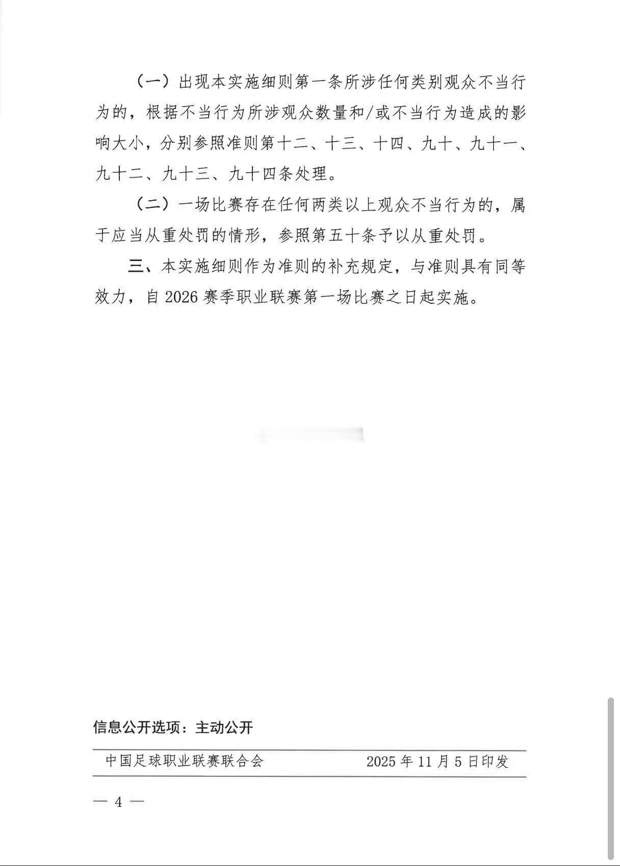 “自2026赛季职业联赛第一场比赛之日起实施”