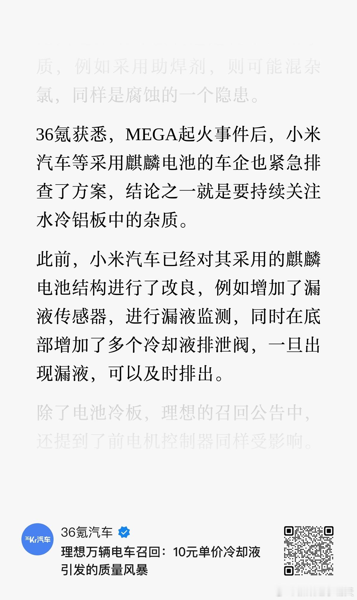 据说有的车企也开始排查隐患了,比如小米增加了漏液传感器(图4)