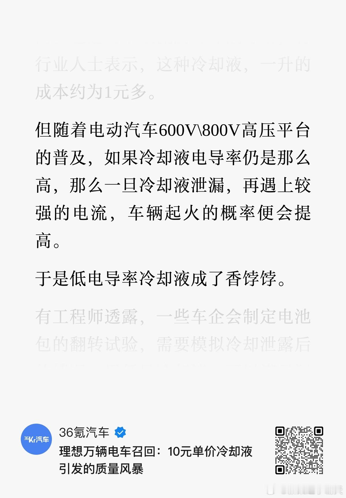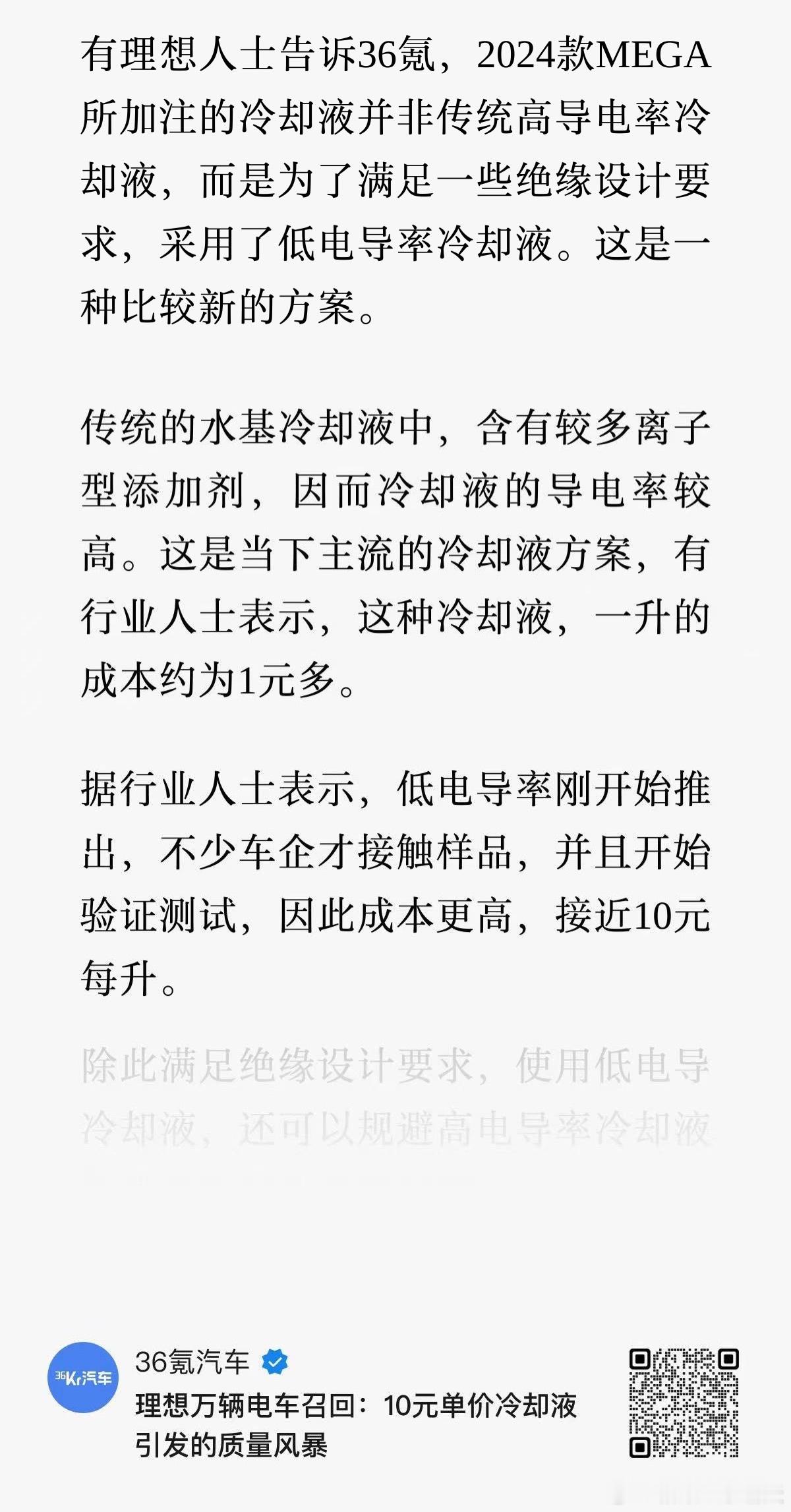 理想 MEGA 其实已经出于防短路等目的,更换了价格高十倍的低电导率冷却液了,但是没想到在“耐腐蚀性”上栽了跟头(图2/图3)