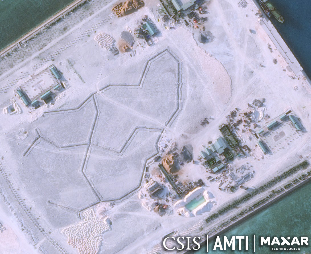 而在越南非法侵占和吹填的中国南沙岛礁中,最大的当属柏礁了,目前越南在该岛礁至少两个区域都进行了人工吹填和建设。其中一个区域已经基本建成了一个3200米级的机场跑道,而且在跑道一旁也开始出现房屋建筑等。