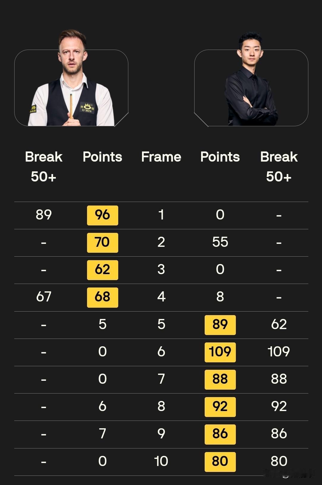 吴宜泽打出神级表现6连鞭逆转小特!赵心童中规中矩战胜斯佳辉。目前2位中国球员率先