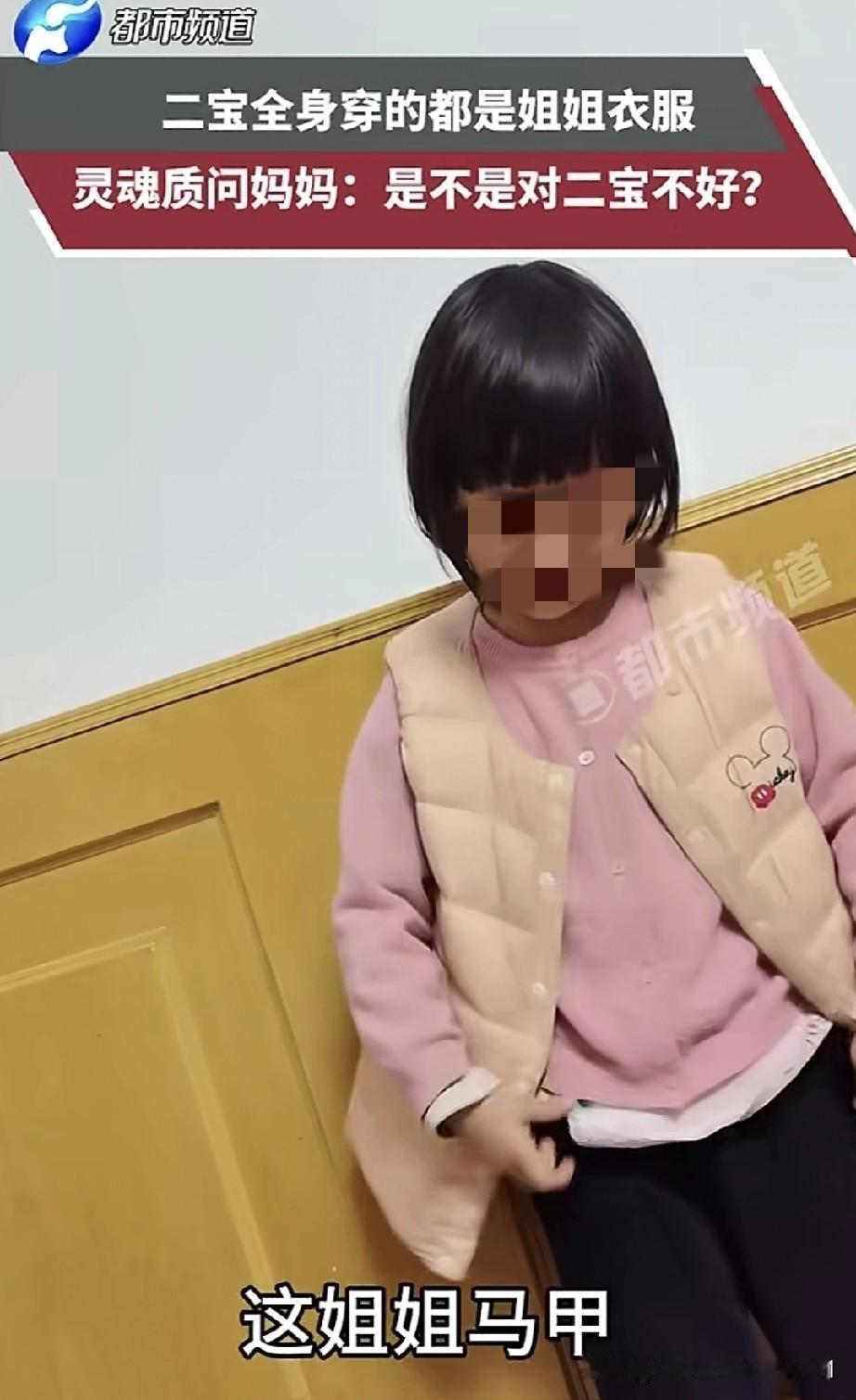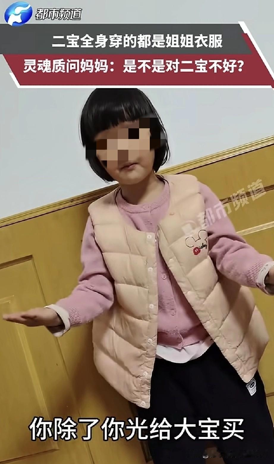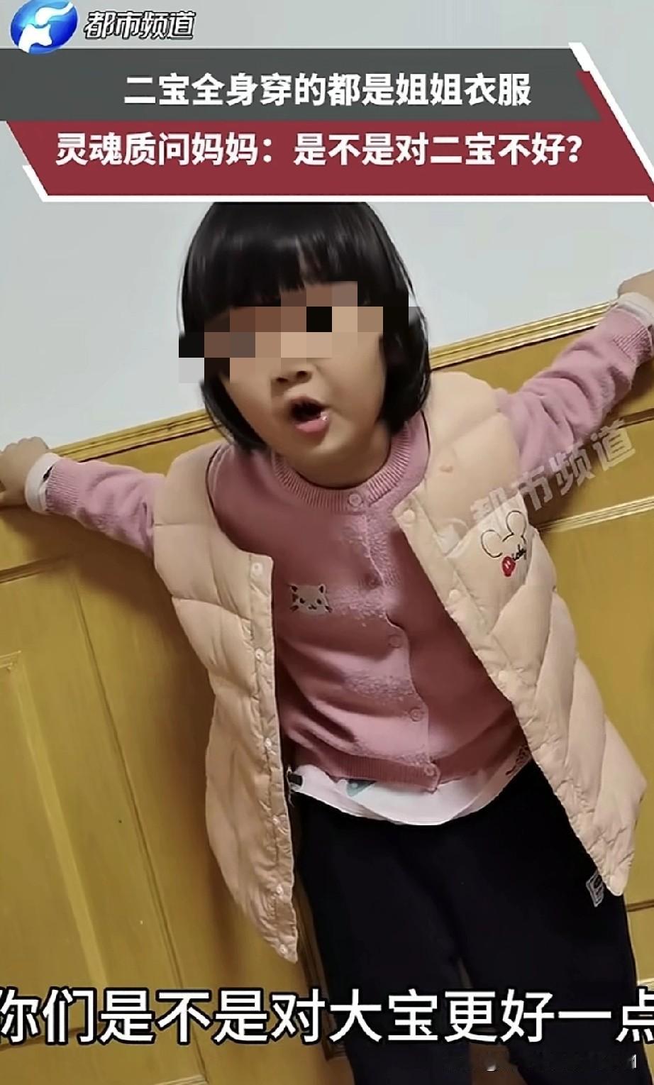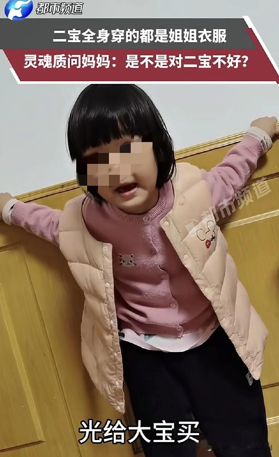 一位宝妈分享了二宝灵魂拷问的视频,并向网友发问:“我是不是对二宝不好呀?” 视频里,二宝指着身上的衣服说:“这是姐姐的睡衣,这是姐姐的毛衣,这是姐姐的马甲,就连裤子也是姐姐的。你就知道给大宝买衣服,不给二宝买。哪有正常人家只给大宝买衣服,不给二宝买的呀?你们是不是更偏爱大宝,对二宝不好呀?”这番话让宝妈无言以对,不知如何回应。 真的不能这样,我对此感触颇深。我也有个姐姐,我也曾反抗过,可反抗根本没用,只有过年才能穿上新衣服。长大后自己挣钱了,便疯狂买衣服,但这也无法弥补小时候对新衣服那种憧憬的缺失,你们能懂这种感受吗? 所以我现在只要一个孩子。既然做不到公平对待,那就别生两个,毕竟不患寡而患不均。 有网友分享的经历和这个孩子类似:“也是家里的老二。小时候大概五岁时,和六岁的姐姐吵架,她吵不过我,就生气地说:‘你身上穿的都是我的衣服,有本事就脱下来!’我一听就火了,一边脱一边丢,喊着‘还你还你,再也不穿你旧衣服了’,然后光着身子在屋里乱跑。爸妈回来看到我光着,惊讶地问我咋回事。我气呼呼地说:‘我姐说衣服是她的,不让我穿。’我妈就数落我姐,说都能穿,但我就是不穿了。我妈又哄我,说衣服没破,买新的浪费。我心疼爸妈赚钱辛苦,最后还是穿上了。小时候我基本没穿过新衣服,一直穿姐姐换下来的。后来长大些,妈妈捡亲戚家不要的衣服回来让我们挑。不过我表面上一直不太在意,只是妈妈对我越来越敷衍。因为我好说话,她永远不懂我心疼她,所以不提要求,还说我天生不讲吃穿、不懂审美。” 有时候不能软弱有什么话一定要和父母说出来让他们知道。