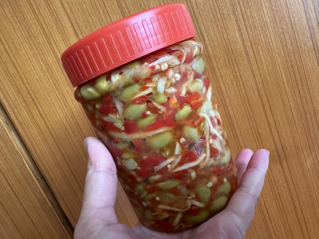 第一批酶酱豆制作成功,非常美味。 记得闺蜜曾经说过她的家人很爱吃,可是她从来没有制作过,今年也没有做,但她自己已经尝过了别人制作的酶酱豆,说是有点气味,感觉不是很美。 我成心让闺蜜分享一点我自己亲手制作的酶酱豆。前天晚上特意去¥2店选购了一个小巧玲珑的玻璃瓶,大约能装到半斤酶酱豆,选这么小的瓶子,是想,万一不合她口味不会造成太大的浪费。瓶子买回来后,用洗洁剂漂洗过,再用刚刚烧开的水泡了好长时间泡了几道,连用来舀酶酱豆调羹也用开水泡过,然后放在太阳底下晾晒一天晒干水渍。傍晚回来的时候装好酶酱豆。 晚上一如既往约闺蜜出来散步,就把这一小罐酶酱豆交给了闺蜜,闺蜜很开心,连连称谢。散步回家后,闺蜜又给我发了信息,说她品尝了酶酱豆,很美味,闻了一下,口水都要掉下来。我问她闻起来有没有异味,她说没有。她还告诉我,她老公说,叫我不用去店里买玻璃瓶,她家有好大的玻璃瓶。哈哈哈!