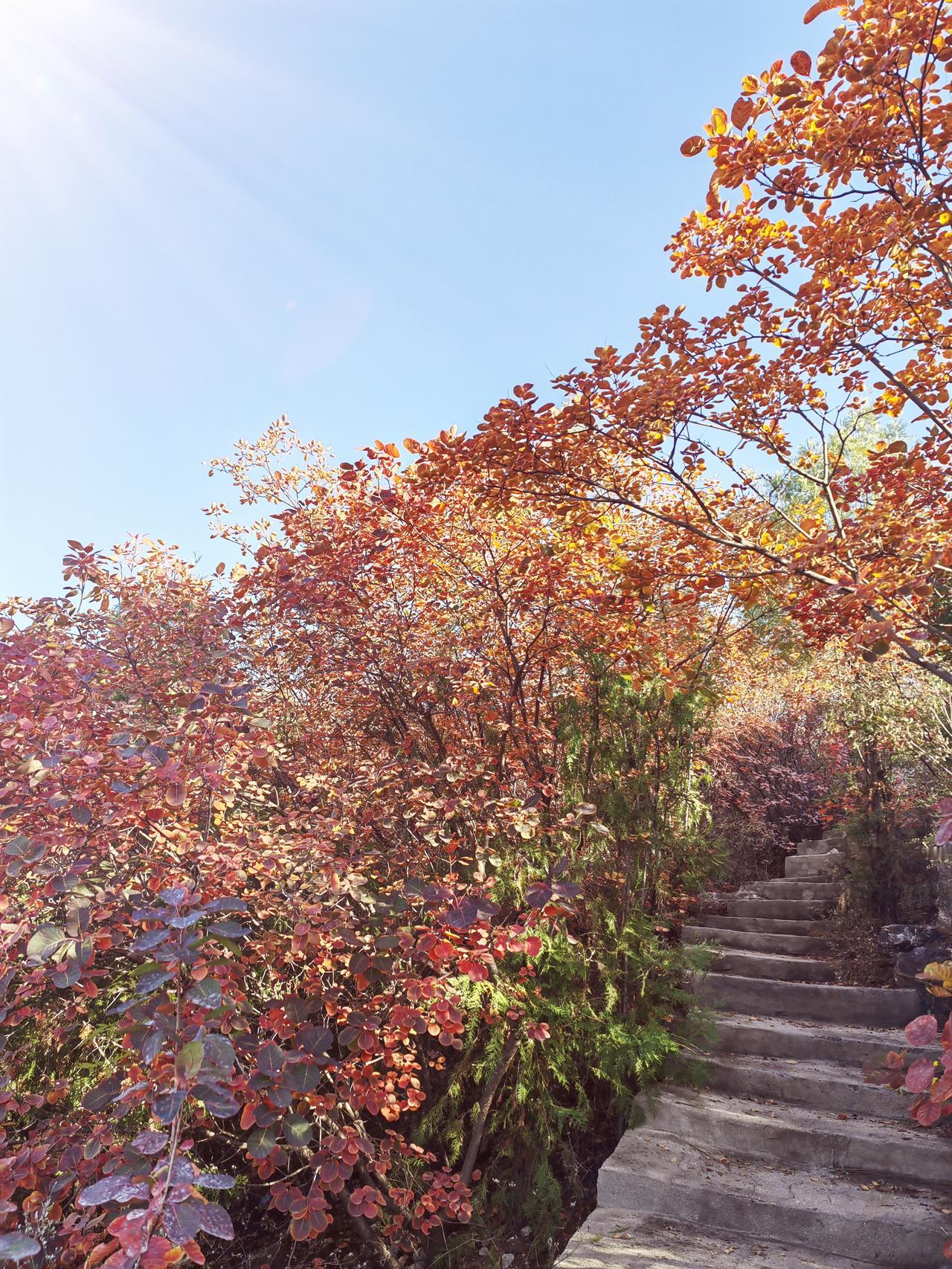 发一组雾山红叶的照片。秋山红叶画图新,满目金黄映日明。香山红叶艳,秋水共天长。霜降红叶舞秋水,映照古桥与月圆。
