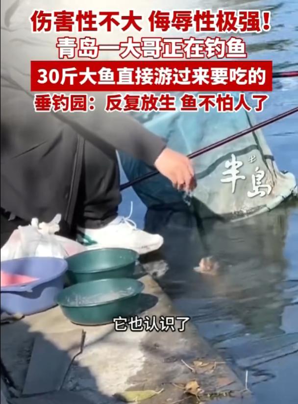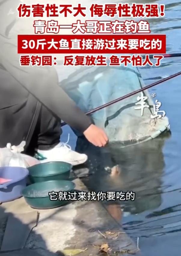 “愿者上钩!”11月6日报道,山东青岛,莱西的一家垂钓园,一位钓友正在岸边休息时,一条重约三十斤的大鲤鱼缓缓游到岸边,张着嘴等待投喂,钓友顺手抓起一把鱼食投入水中,鱼儿不慌不忙地享用起来,完全不见野生鱼类见人就逃的惊慌。[得意] 这条鲤鱼在园内生活多年,因为园区规定十斤以上的鱼获必须放生,它先后被钓起又放回过七八次,久而久之这条鱼不仅不再畏惧人类,反而把钓鱼人和食物联系在了一起。 现在它每天都会在几个固定的投喂点巡游,特别是上午九点到十一点,下午三点到五点这两个时段,几乎都能看到它的身影,很多客人专门为了看它而来,还给它起了个外号叫老员工。 对于想吃大鱼的顾客,垂钓园提供了折中方案,可以从专门养殖池购买同等规格的鱼,这样既保留了这条明星鱼,也满足了顾客需求。 鱼类具备基本的学习能力,通过反复经历“见到人影-获得食物”的过程,这条鲤鱼形成了条件反射,由于从未受到真正伤害,它对人类的警戒心也逐渐降低。 这条聪明的鲤鱼无意中成了垂钓园的活广告,现在不少垂钓场所都在尝试类似的管理模式,既满足钓鱼乐趣,又保护大型鱼类。 垂钓园方面表示,他们会继续保护好这条特别的鲤鱼,同时完善管理制度,让更多人体会到人与自然和谐相处的乐趣。 看了这个新闻,感觉青岛这条30斤的大鱼真是成精了!它不光不怕人,还主动游过来“上班讨饭”,这有趣的一幕被拍下来后,迅速在网上火了,引发了网友们的热烈讨论。 “这鱼比我还会摸鱼,不对,它是专业‘等鱼’,妥妥的垂钓园编制内员工,伙食稳定还不怕被炒。” “哈哈哈,它已经掌握了核心生存技巧:只要我主动,就有饭吃的,这摆明了是碰瓷式吃饭,专挑好说话的钓友下手。” “这鱼心态真好,反正也钓不走,干脆躺平享受VIP待遇,每天还有人专门喂食,这小日子过得比我都滋润。” “垂钓园这规定其实挺聪明的,保护了大鱼,又成了活广告,现在好多人去估计就是为了看它,营销鬼才。” “我觉得这样挺好,形成了一种默契的共生关系,鱼得到了食物,游客获得了快乐,园区有了名气,三赢!” “但会不会有个隐患?这条鱼老是这么亲人,万一遇到不守规矩或者别有用心的人,它岂不是很容易受到伤害?毕竟不是所有人都友善。” “这种互动会不会让其他鱼也学坏?都跑来要吃的,不就失去钓鱼的乐趣了嘛,跟去鱼塘喂鱼没啥区别了。” “30斤!这得是个多大的锅才能炖得下啊?光想想就流口水了。” “从专业角度说,这其实是典型的鱼类条件反射,一次次被钓起又放生,它已经把‘人’和‘食物’紧密联系起来了,跟巴甫洛夫的狗一个道理,说明鱼并不像我们想的那么笨。” “这大概率是条鲤鱼或者草鱼,这类鱼本来就比较聪明,在养殖环境下更容易出现这种通人性的行为。” “它会不会已经成为那片水域的老大了?每天带着小弟们巡视领地:‘都机灵点,两脚兽又来送饭了!’” 如果你在现场,你会心甘情愿地喂它鱼食,还是想尽办法挑战一下,试试看能不能把这条“园中一霸”给钓上来呢?快来评论区说说你的选择和理由吧! 信源:青岛日报