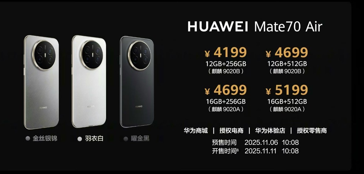 华为Mate70Air价格出来了!比iPhoneAir便宜多了!