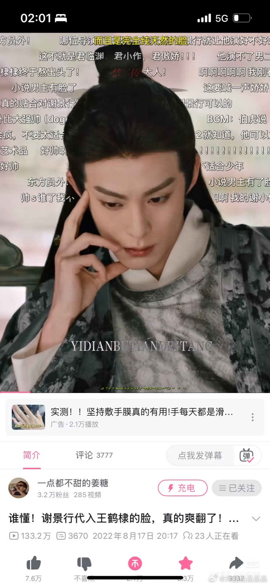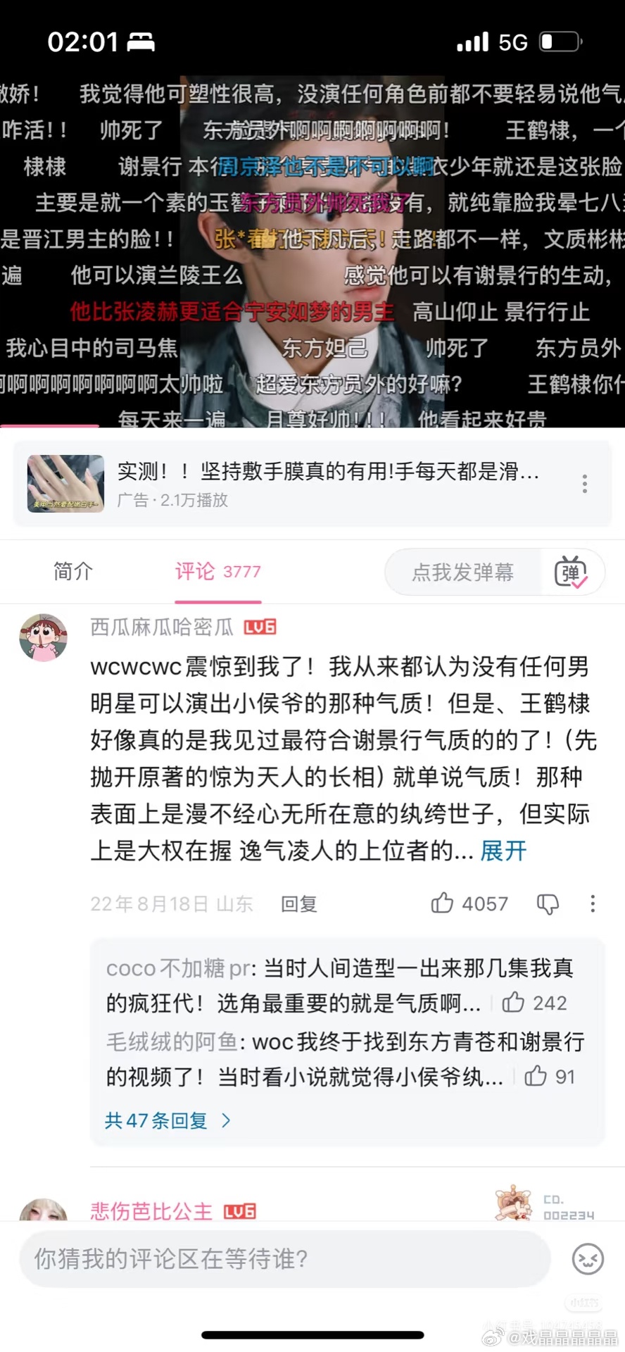 有超过5000人点赞评论认可王鹤棣饰演谢景行;