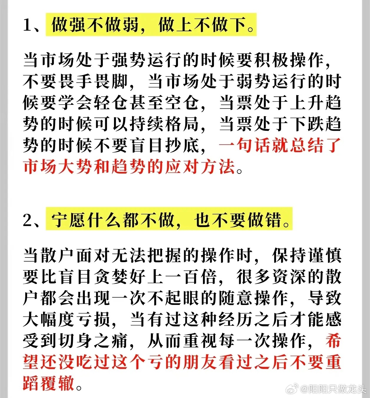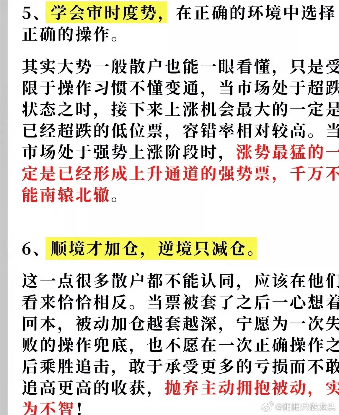 6. 心态别贪别慌:贪心像手里抓沙子,握越紧漏越多,见好就收;恐慌似遇雷雨乱躲,越慌越出错,涨跌都保持平常心。