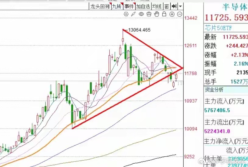 而且今天早盘半导体板块的反弹非常的强烈,但是根据莎莎观察半导体板块之前面临比较明显的短线压力位。大家请看图二半导体板块的日线图,从图中我们可以发现半导体板块面临三角形,顶点破位之后反抽到压力位的状况。